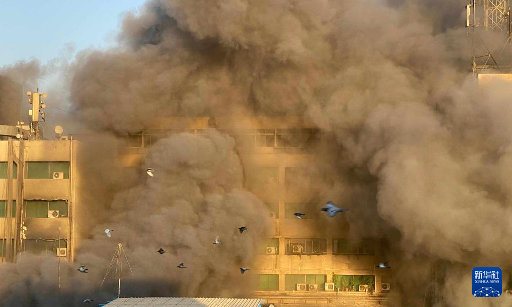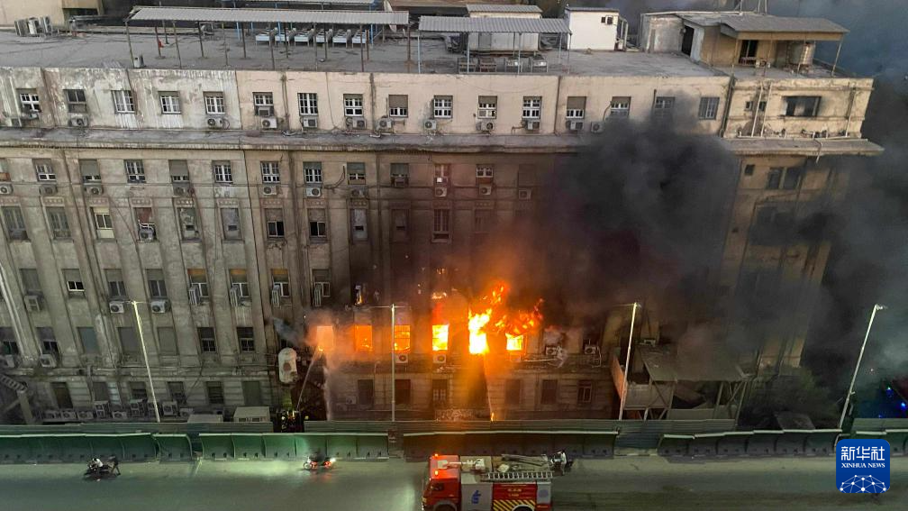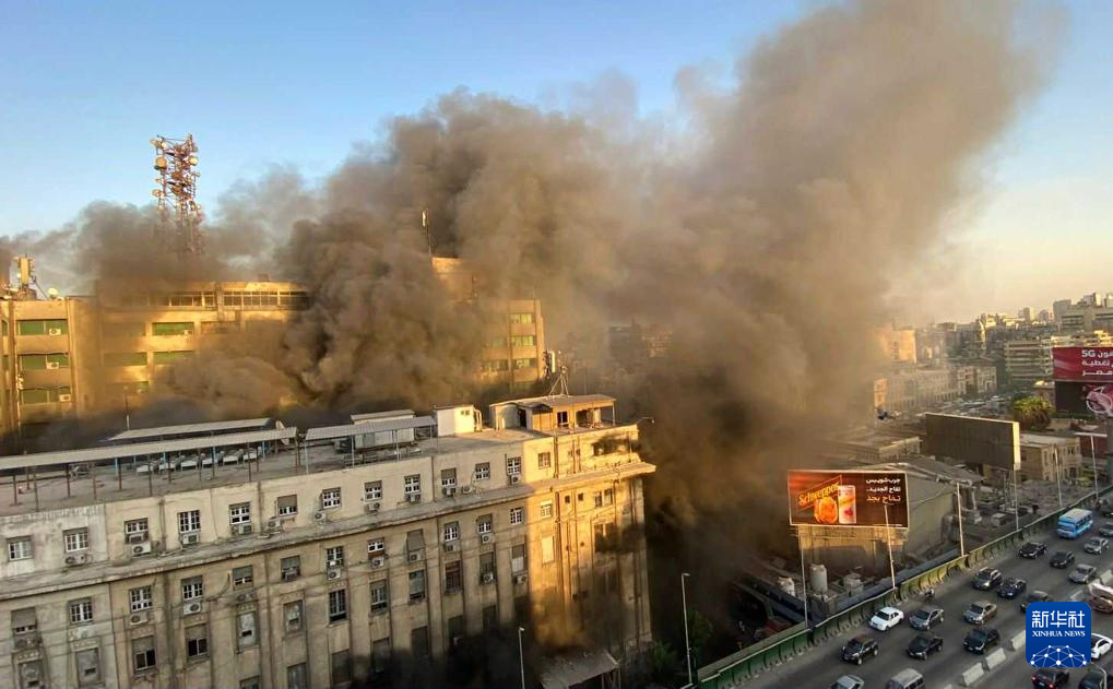 7月7日,在埃及首都开罗,一座电信大楼发生火灾冒出浓烟。