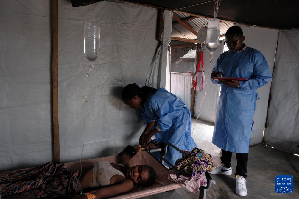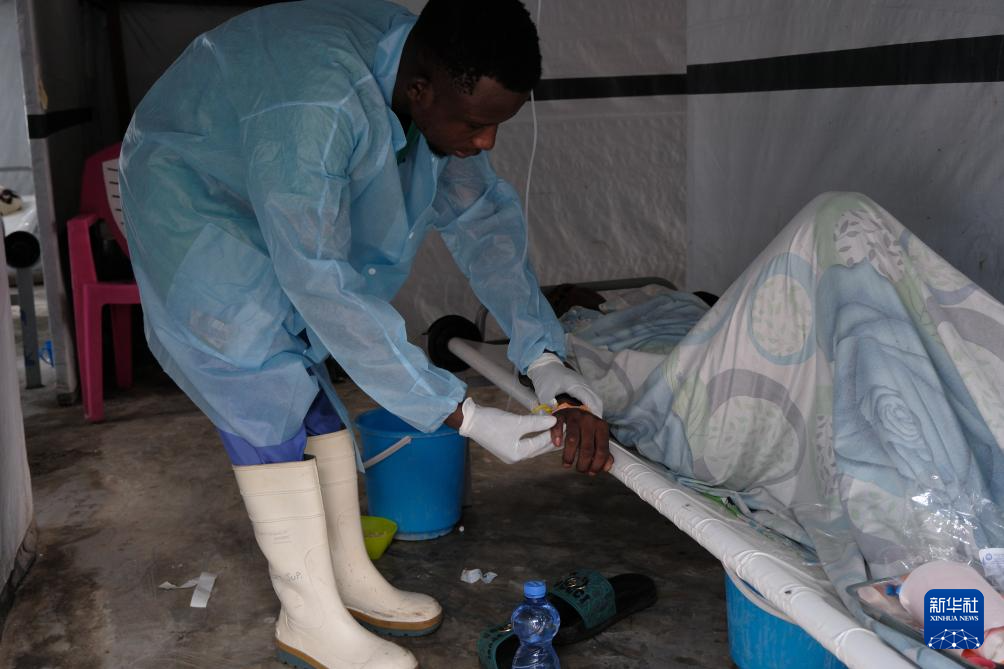 7月10日,在刚果(金)首都金沙萨市郊的一座霍乱治疗中心,医护人员对病患进行治疗。