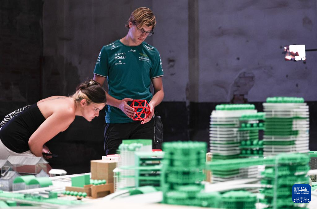 7月16日,在意大利威尼斯,参观者在第19届威尼斯国际建筑双年展中国馆观看展品《天空城》。