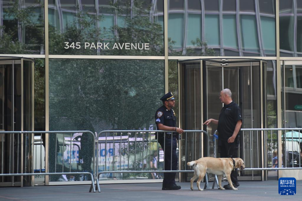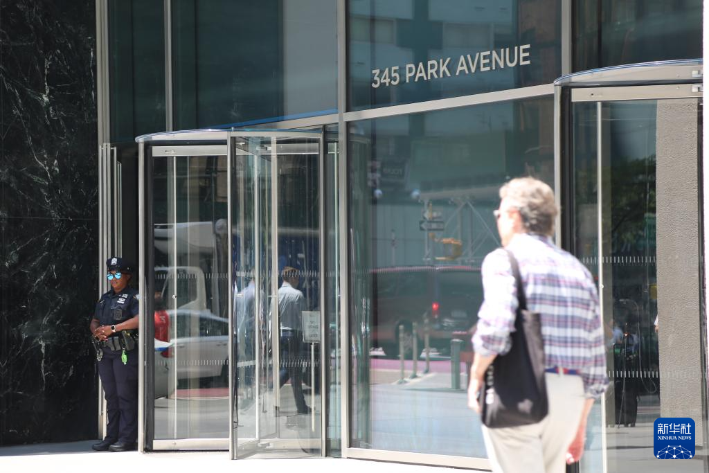 7月29日,警员在美国纽约市中心公园大道345号大楼外值守。