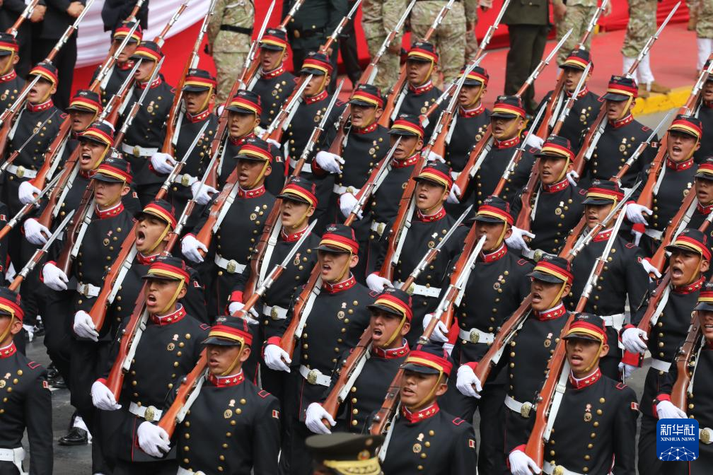 7月29日,在秘鲁首都利马,士兵参加独立日阅兵式。