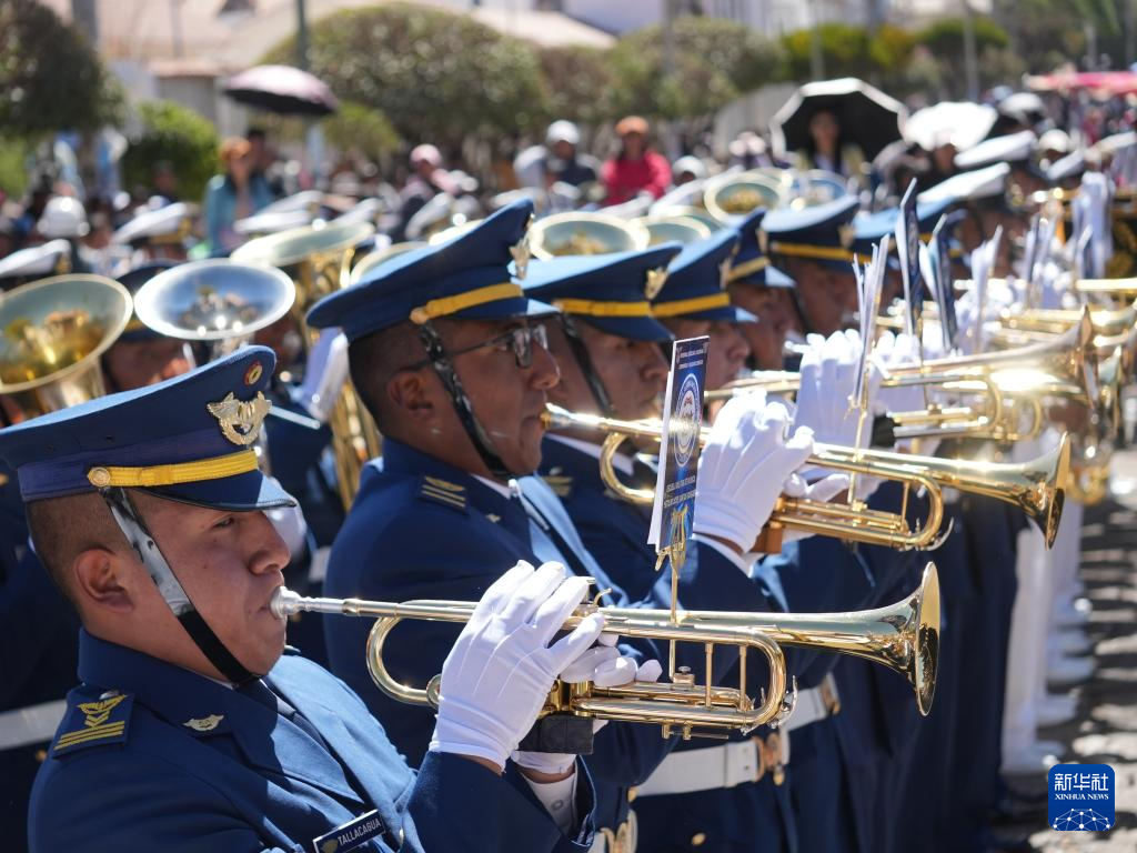 8月7日,在玻利维亚苏克雷,军乐队在阅兵式上演奏。