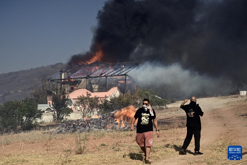 8月8日,希腊首都雅典东南约35公里的凯拉泰阿镇出现严重火情,当地房屋被焚毁。