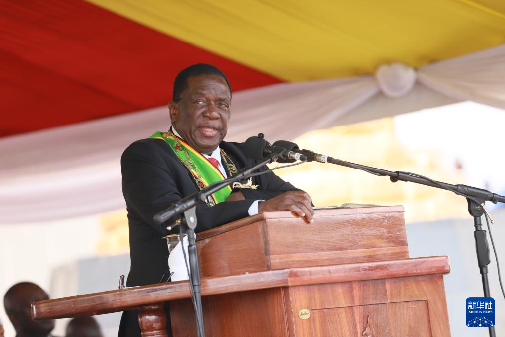 8月11日,在津巴布韦首都哈拉雷举行的第45个英雄日纪念活动上,津巴布韦总统姆南加古瓦发表讲话。