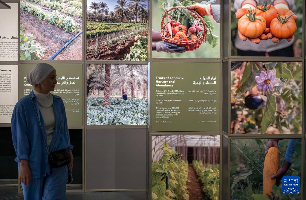 7月20日,一名女子在卡塔尔首都多哈的伊斯兰艺术博物馆参观一场关于饮食文化的展览。新华社发(尼库摄)