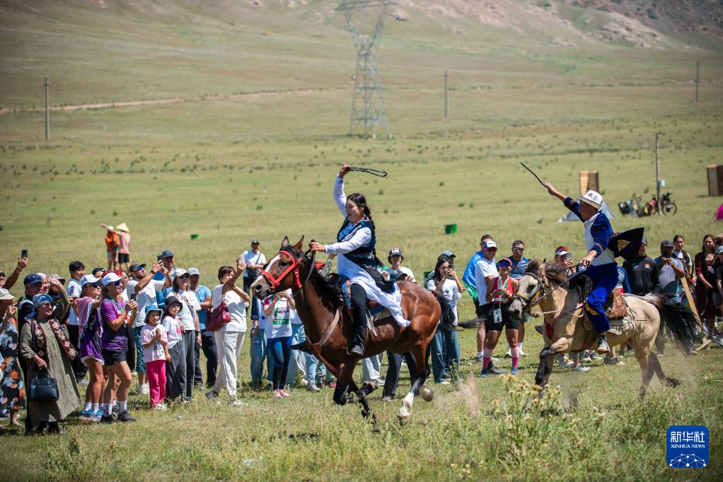 这是8月10日在吉尔吉斯斯坦伊塞克湖南岸举行的生态文化艺术节上拍摄的骑马追逐游戏。