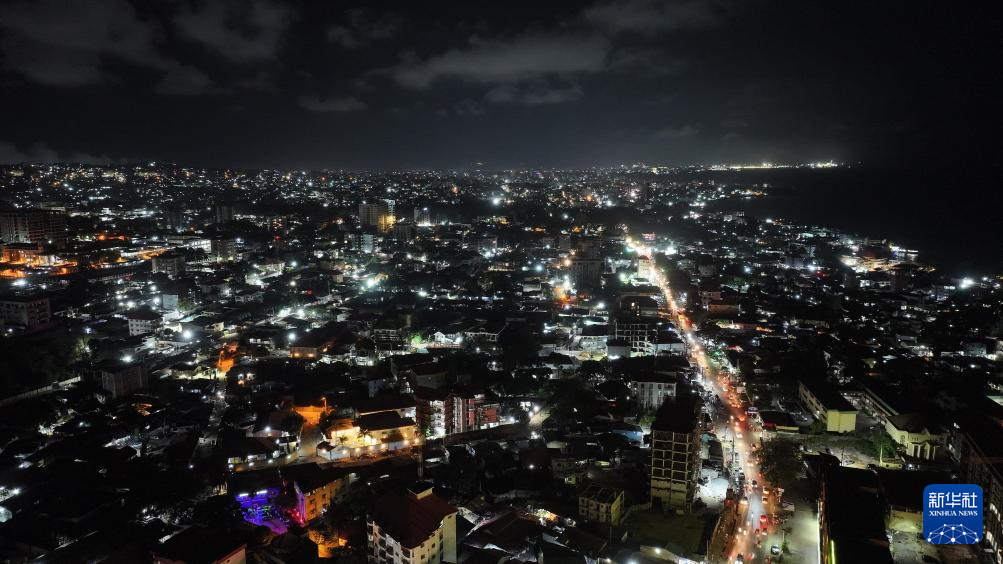 这是4月26日在几内亚首都科纳克里拍摄的城市夜景(无人机照片)。