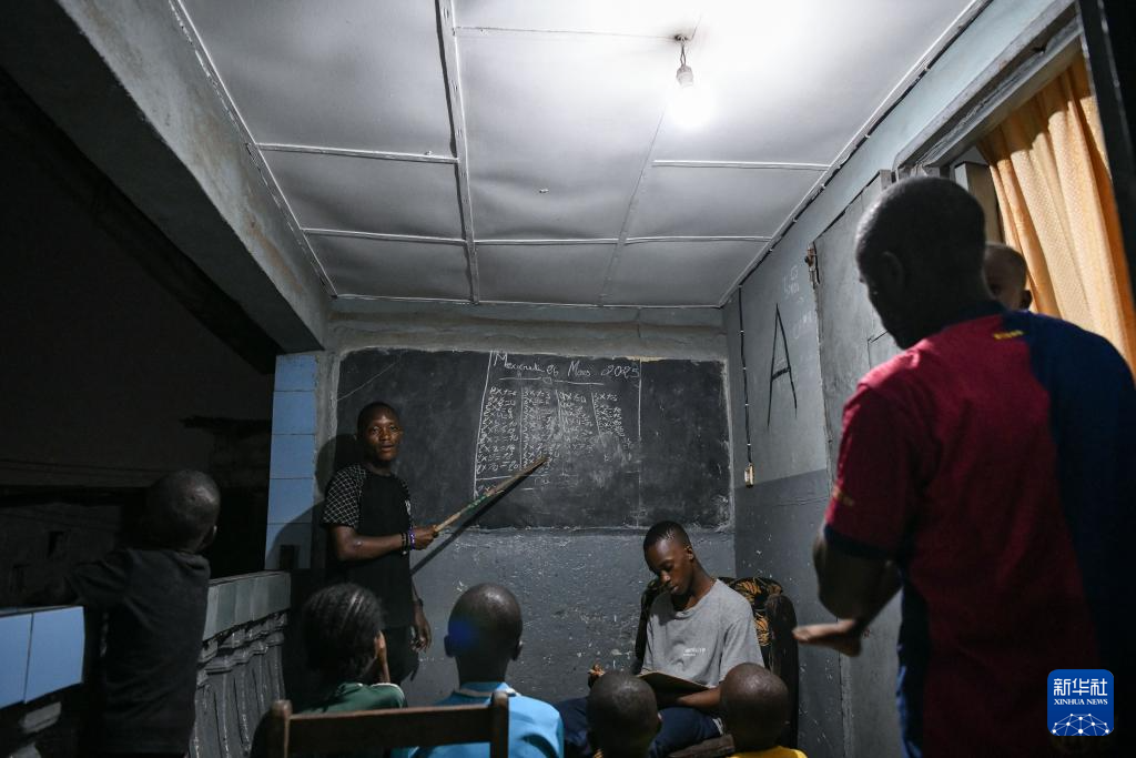 4月26日,在几内亚首都科纳克里的一处社区,孩子们在学习。