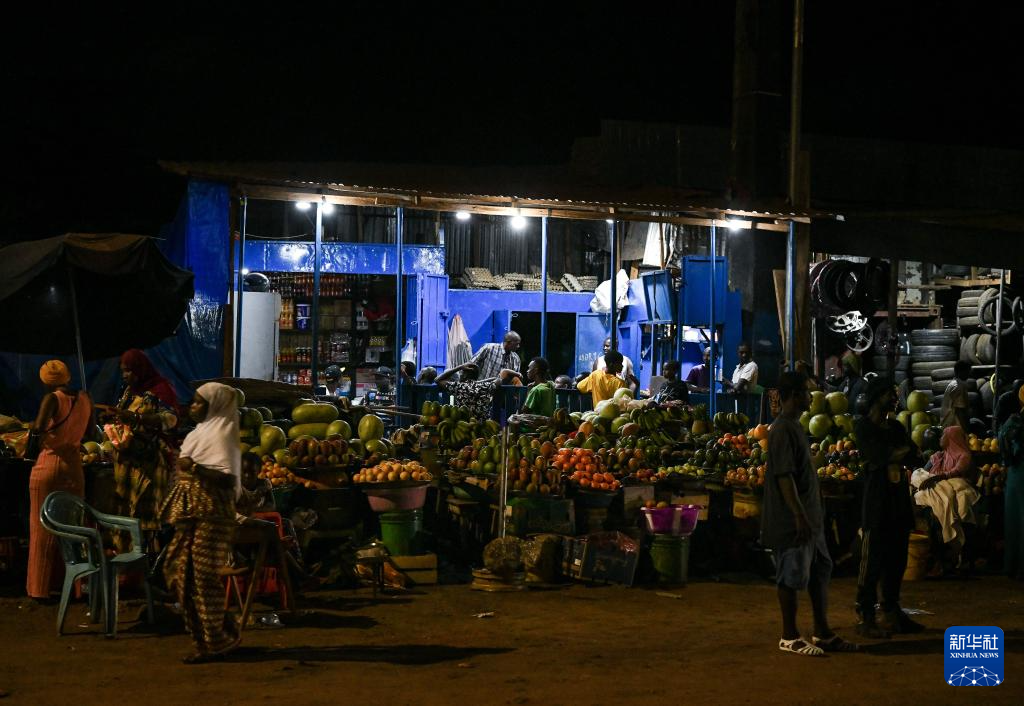 这是4月26日在几内亚首都科纳克里拍摄的夜市商铺。