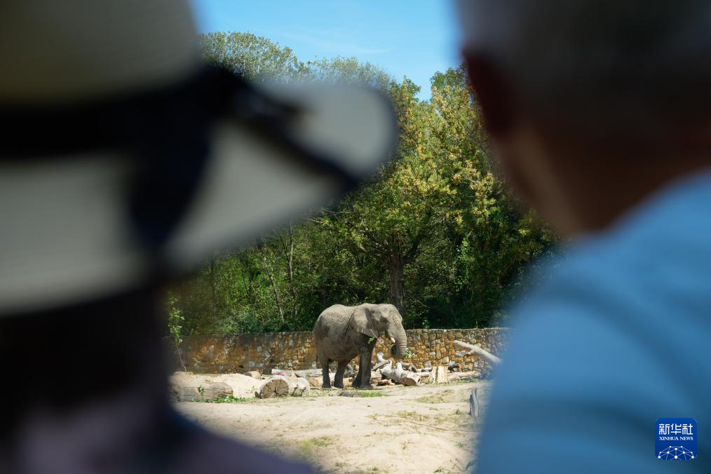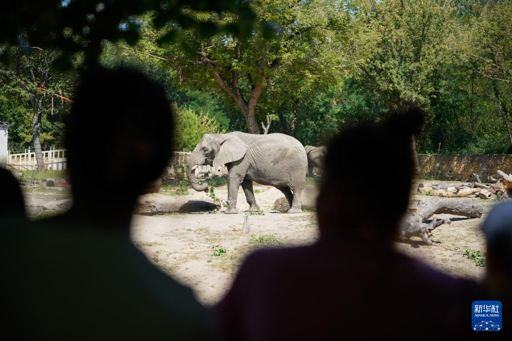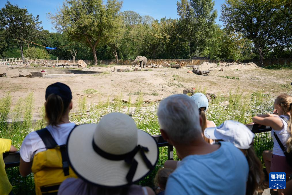8月12日,游客在波兰华沙动物园观看大象。