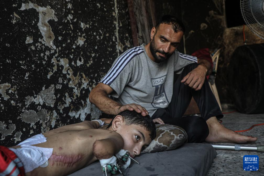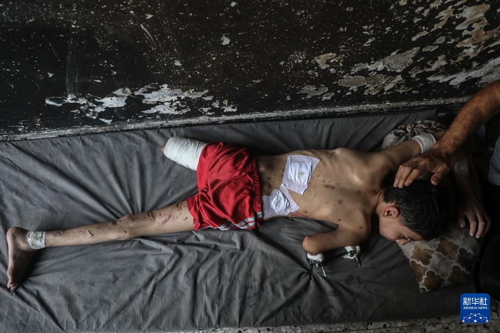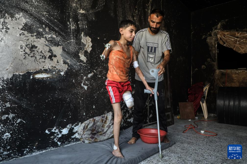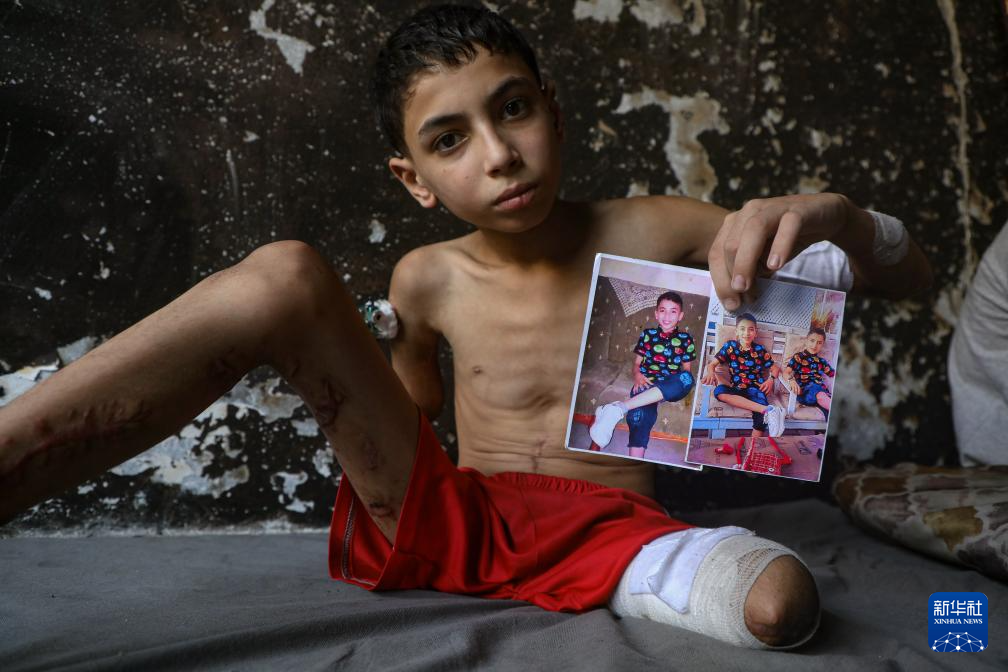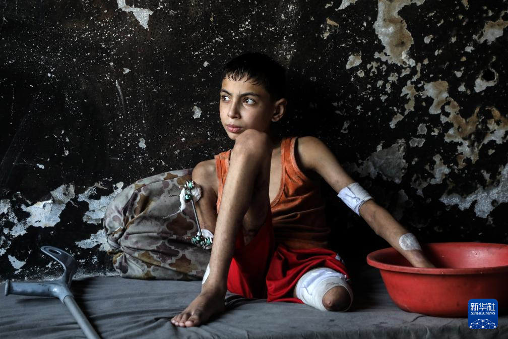 11岁的巴勒斯坦儿童萨米尔·扎库特在以军空袭中失去了右臂和左腿,造成永久残疾。