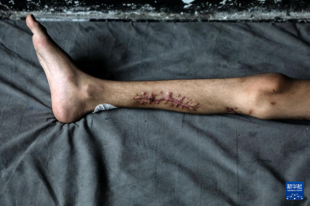 这是8月14日在加沙拍摄的萨米尔·扎库特受伤的右腿。