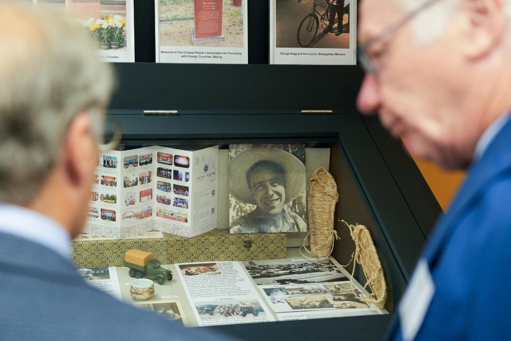 7月22日,在英国赫特福德郡哈彭登镇,人们观看何克纪念展。新华社记者 吴鲁 摄