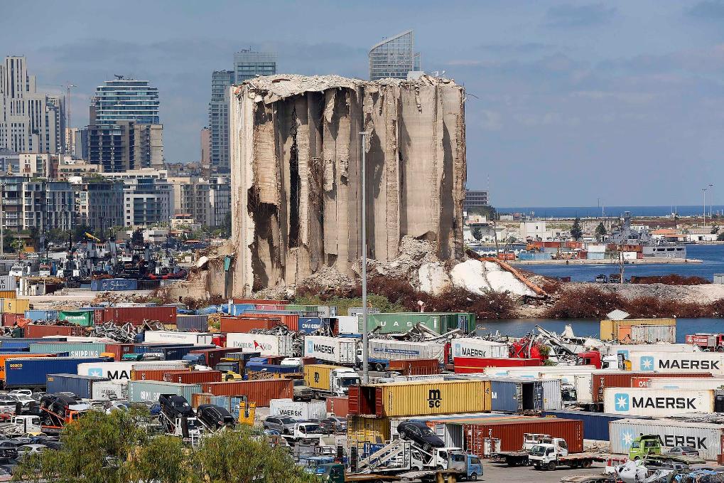 这是2020年8月5日在黎巴嫩首都贝鲁特拍摄的损毁的小麦仓库。新华社发(比拉尔·贾维希摄)