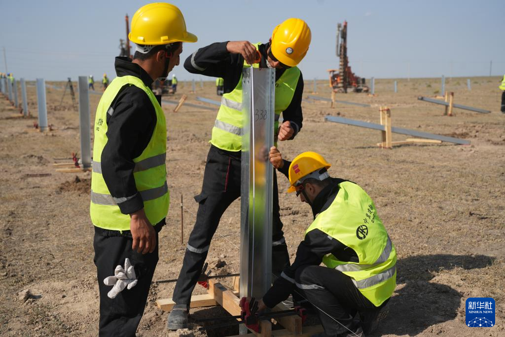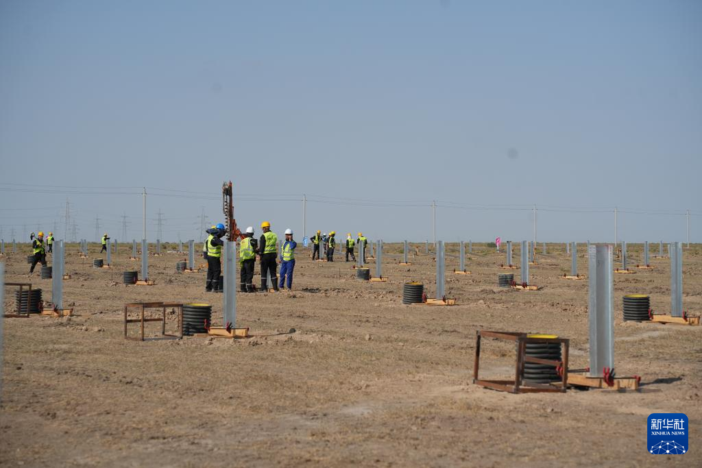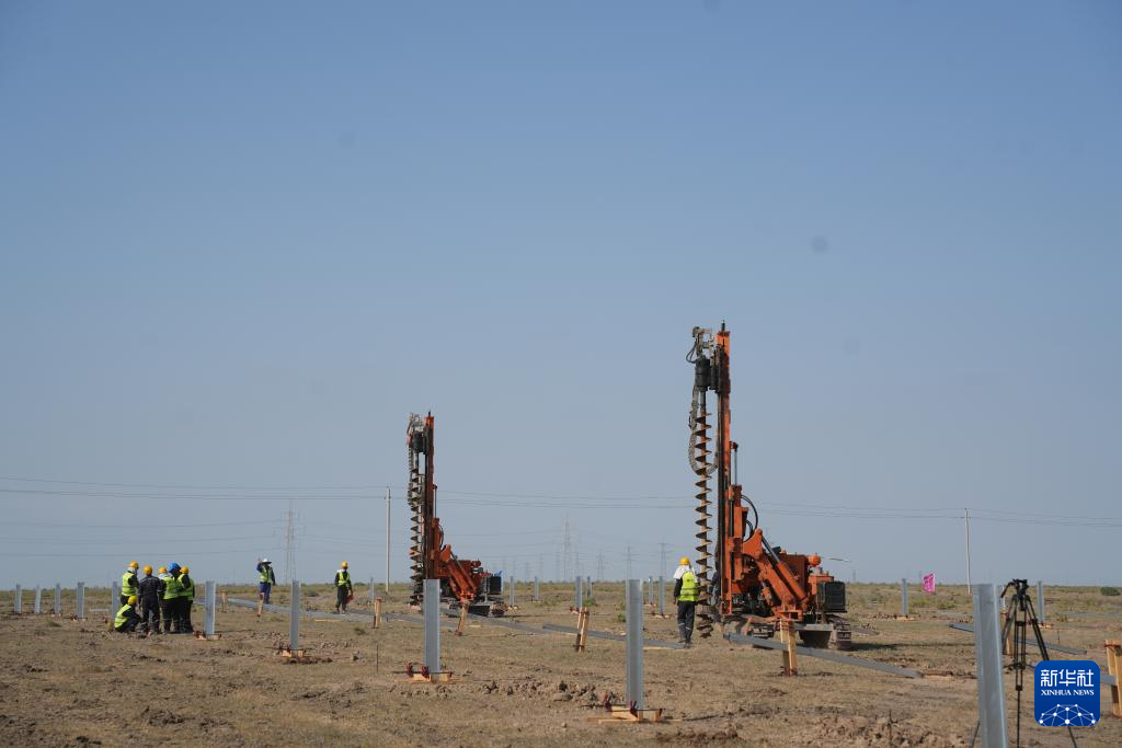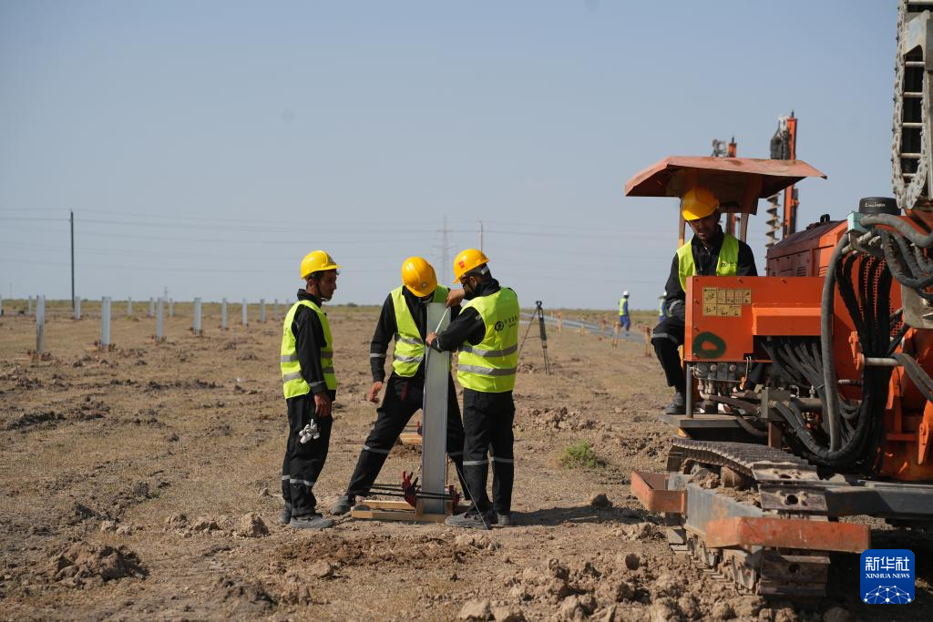 骄阳无遮,黄土飞扬。零星灌木点缀的空旷工地上,蓝顶白墙的活动板房格外醒目,银灰色钢桩整齐排列,头戴黄色安全帽的工人正驾驶钻机作业。在阿塞拜疆东南部的比利亚苏瓦尔区,中国企业正在建设该国装机容量最大的光伏电站项目——比利亚苏瓦尔445兆瓦光伏电站项目。