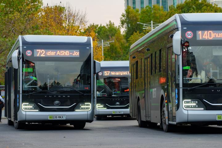2023年10月26日,市民在乌兹别克斯坦首都塔什干乘坐新能源客车。在塔什干街头,来自中国的新能源客车随处可见。