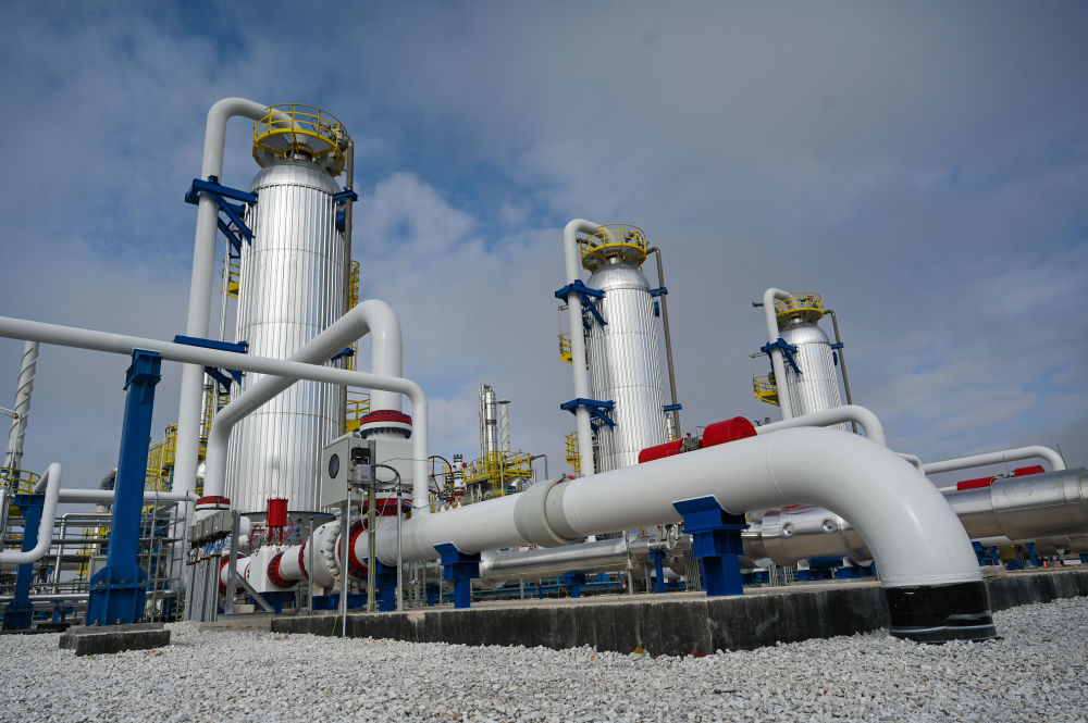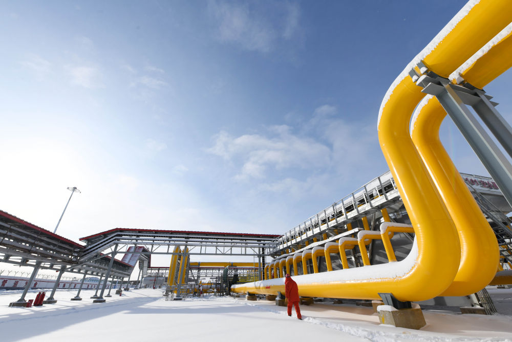 2019年12月,中俄东线天然气管道北段工程正式投产通气。截至2025年2月,中俄东线天然气管道累计输气量突破900亿立方米,为沿线经济利用清洁能源、推动高质量发展提供能源支撑。这是2019年11月19日在黑龙江黑河拍摄的中俄东线天然气管道北段黑河首站场区。