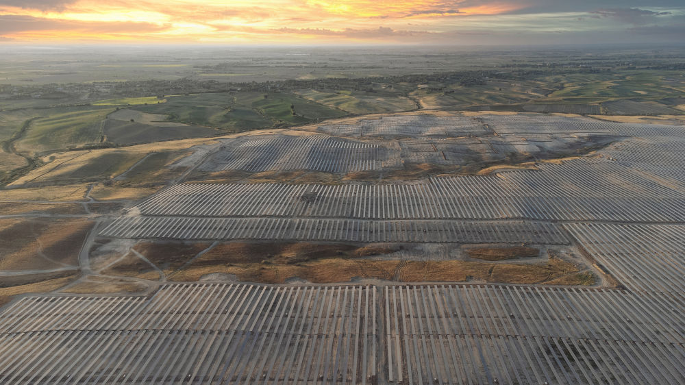 在乌兹别克斯坦塔什干州布卡区,由中国东方电气集团有限公司承建的乌兹别克斯坦布卡263兆瓦光伏发电项目正在稳步建设。项目建成后,预计每年发电可超过57万兆瓦时,助力乌能源结构转型,迈向绿色低碳发展。这是2025年5月11日拍摄的该项目现场(无人机照片)。