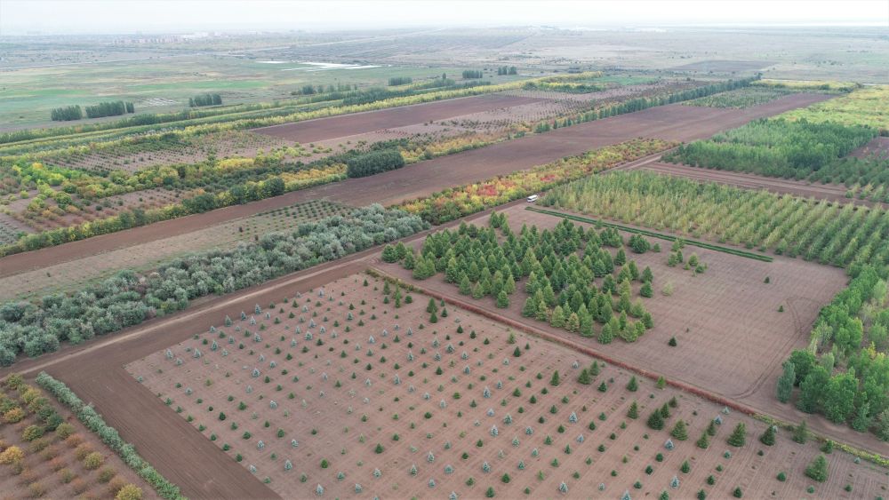 2023年9月11日在哈萨克斯坦首都阿斯塔纳拍摄的一处植物种质资源苗圃(无人机照片)。阿斯塔纳素有“冷都”“风都”之称,每到冬天寒风刺骨。多年来,哈萨克斯坦致力于在这座城市周围建设规模宏大的首都圈生态屏障。中国科学院新疆生态与地理研究所与当地机构开展的合作项目,为这一努力带来了新的思路和动能。