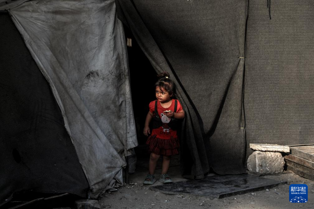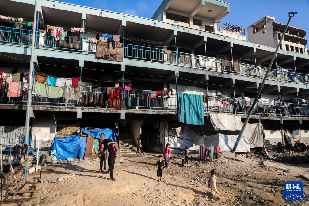 这是8月27日在加沙城西南一处避难所拍摄的巴勒斯坦儿童。