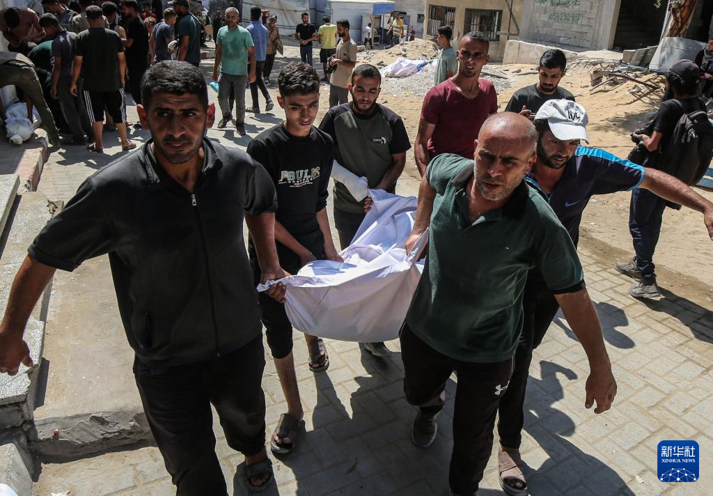8月30日,人们在加沙城一所医院搬运空袭遇难者遗体。