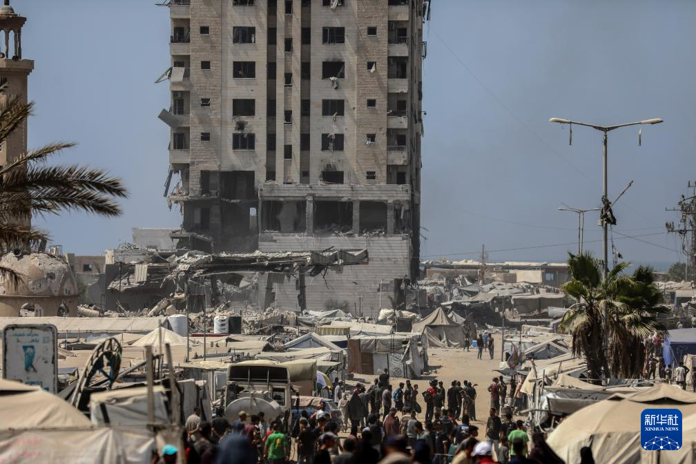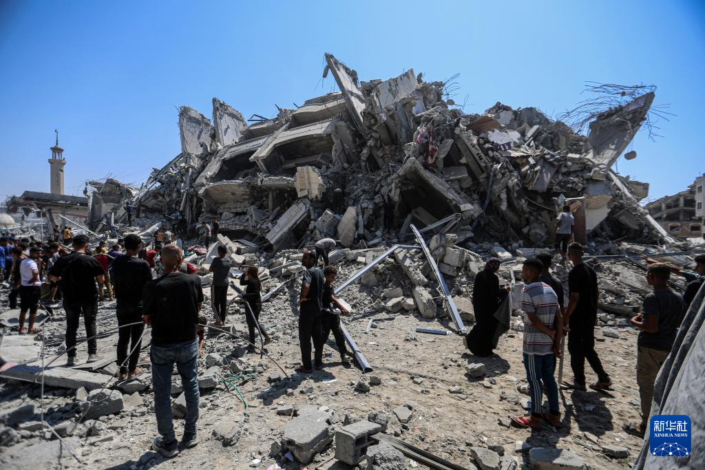 9月5日,人们在加沙城查看遭以色列军队空袭后的废墟。