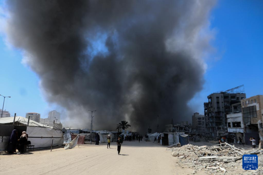 9月5日,加沙城一栋建筑遭以色列军队空袭后升起浓烟。
