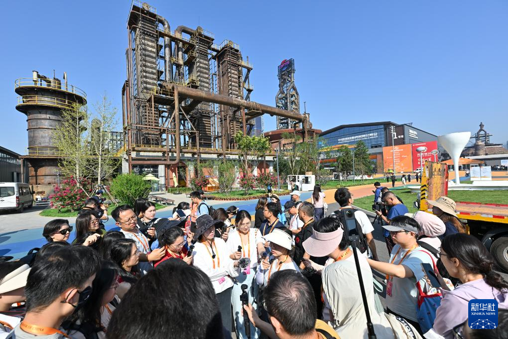 9月9日,媒体记者在首钢园内采访。