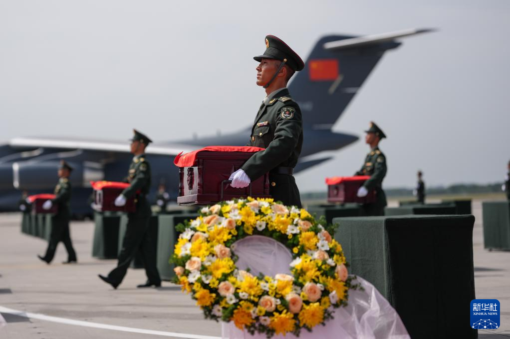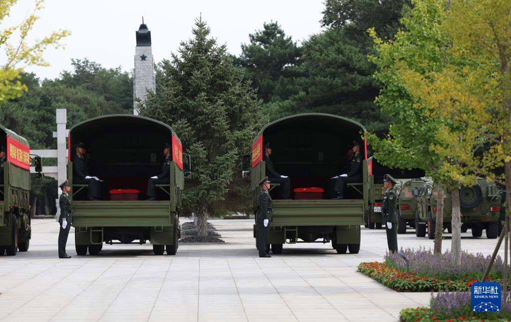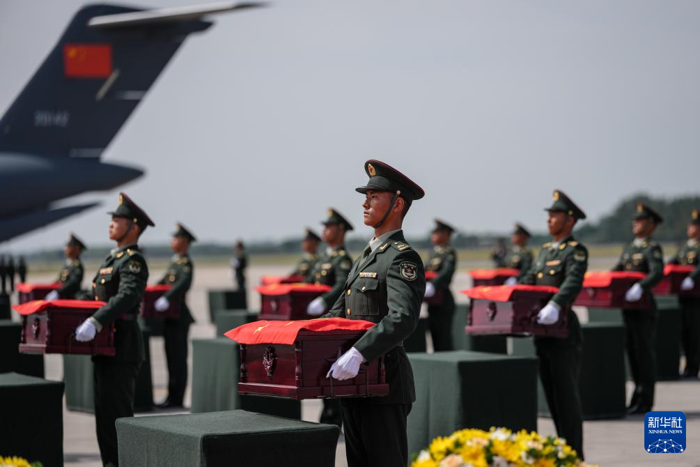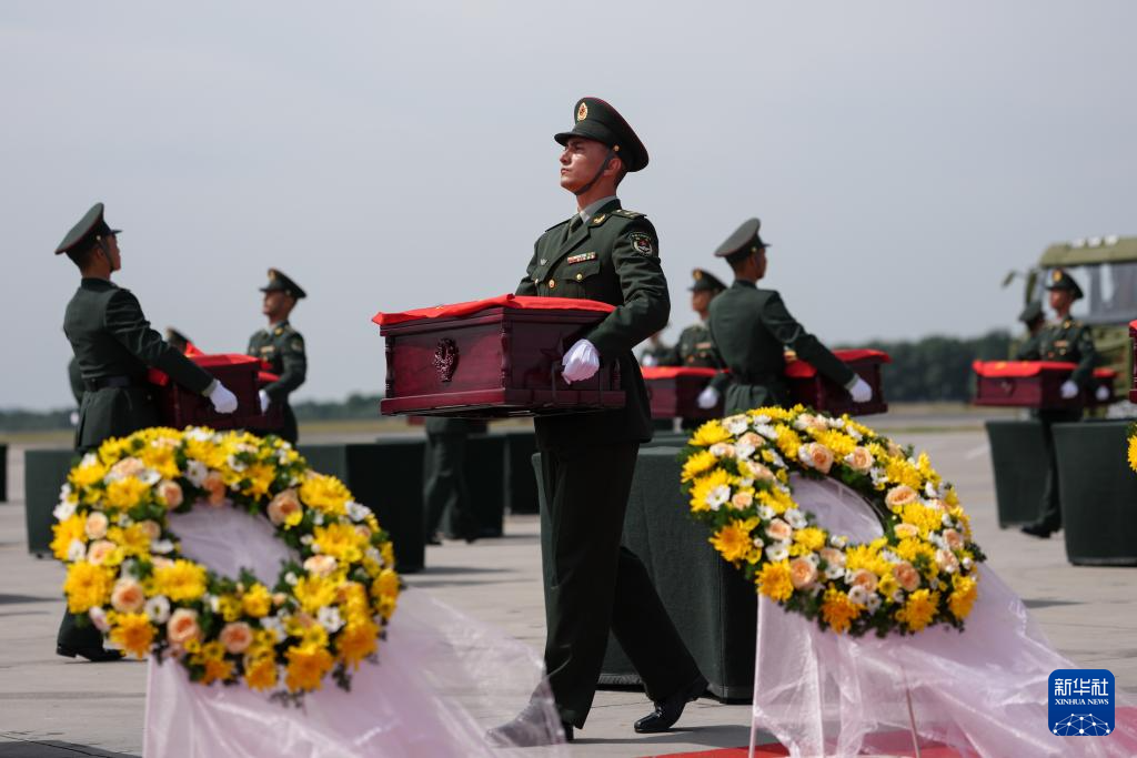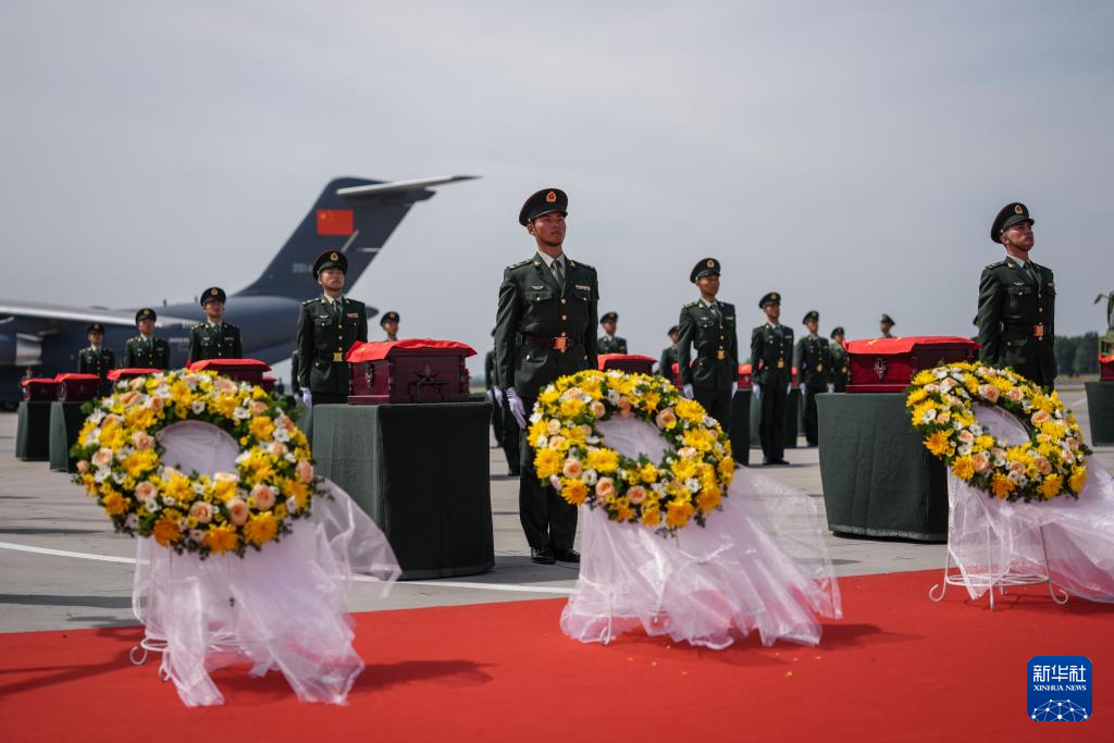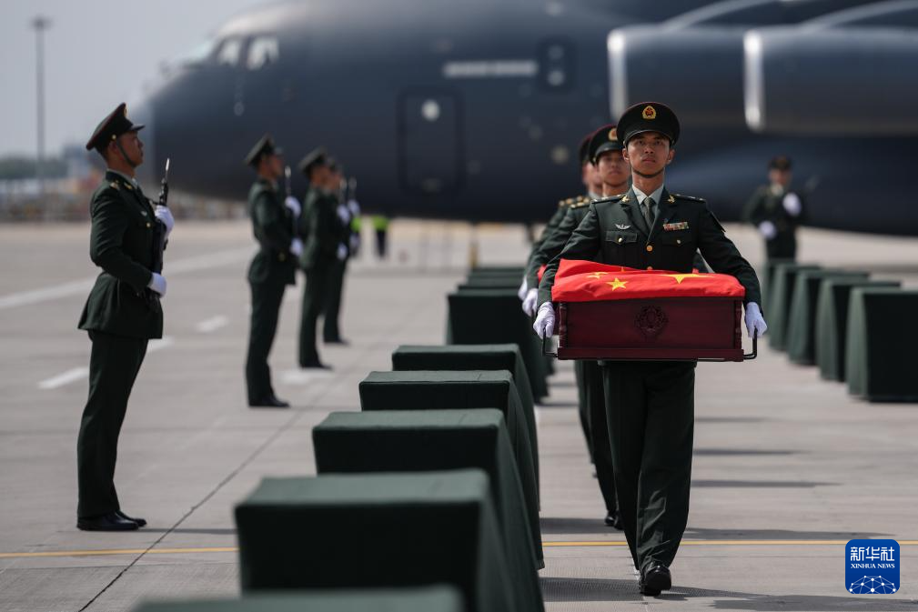 9月12日,第十二批在韩中国人民志愿军烈士遗骸回国。这是志愿军烈士遗骸抵达沈阳抗美援朝烈士陵园。