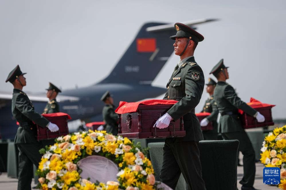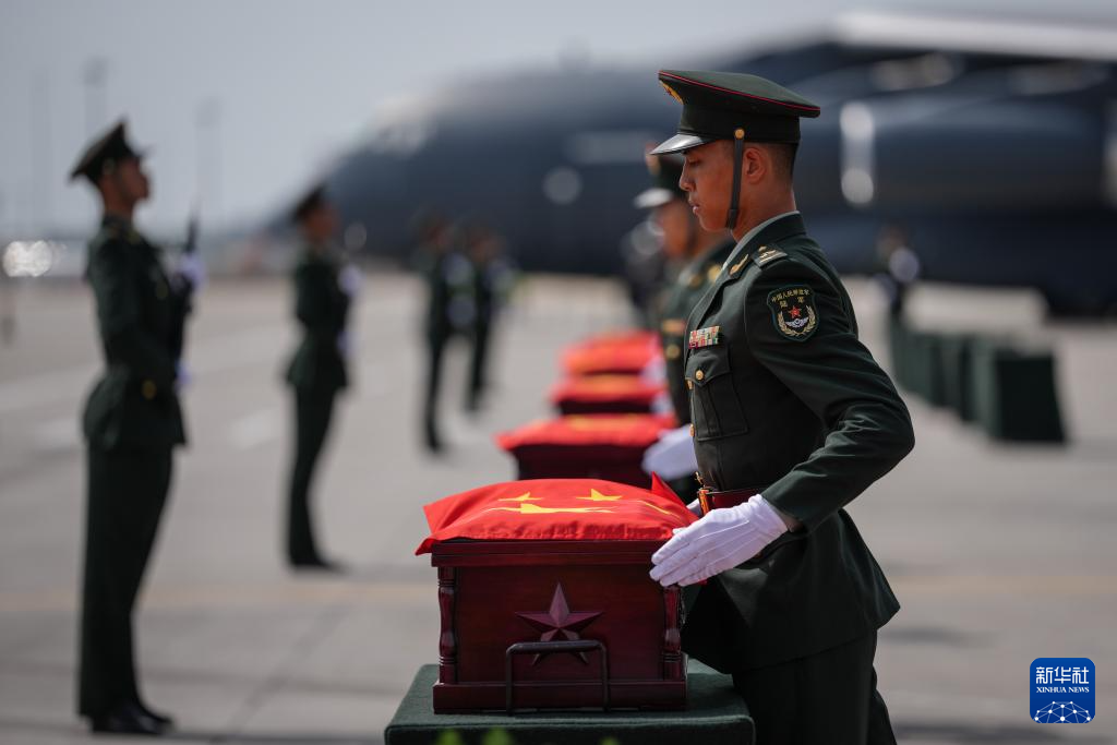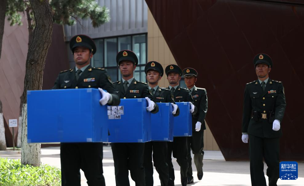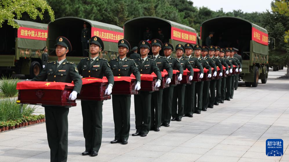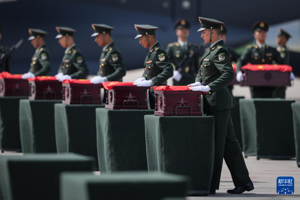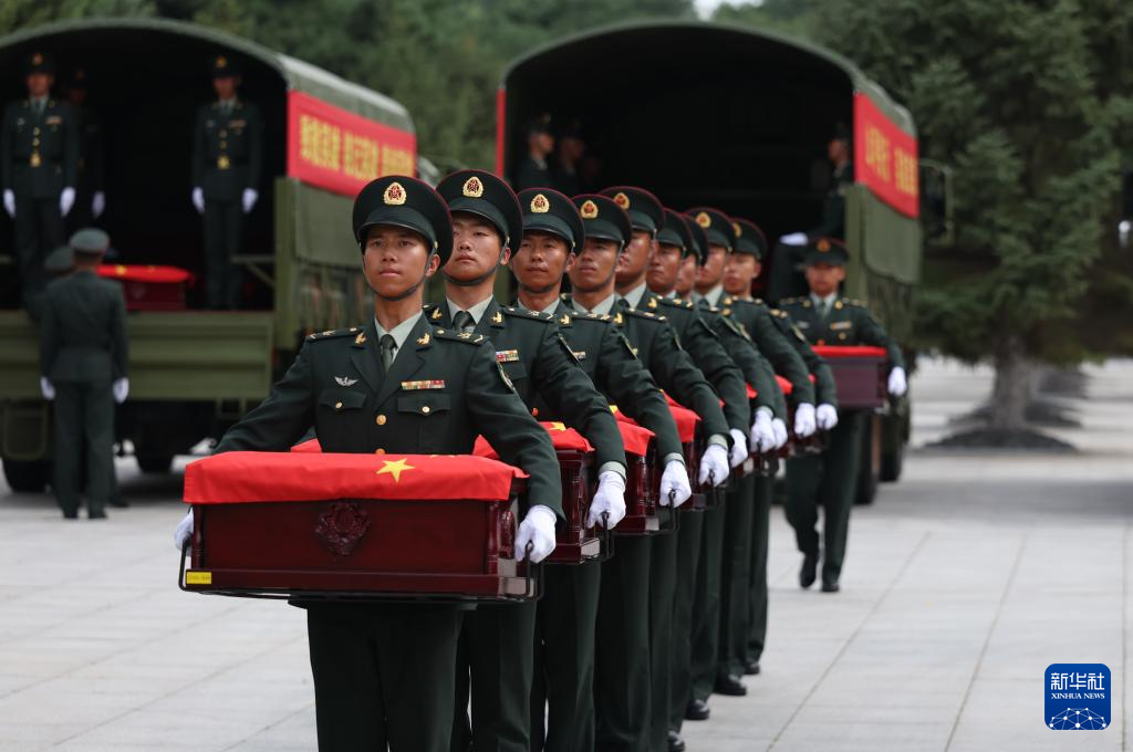 9月12日,第十二批在韩中国人民志愿军烈士遗骸回国。这是志愿军烈士遗骸抵达沈阳抗美援朝烈士陵园。