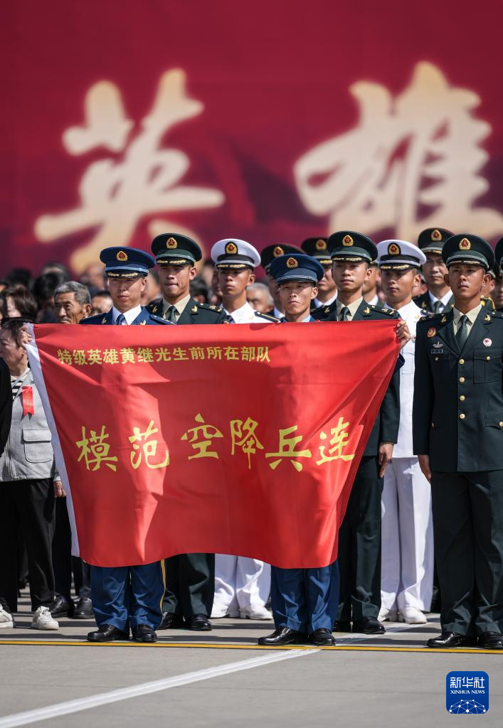 9月12日,第十二批在韩中国人民志愿军烈士遗骸回国。这是空军空降兵某部“黄继光英雄连”官兵在沈阳桃仙国际机场举行的迎回仪式上。