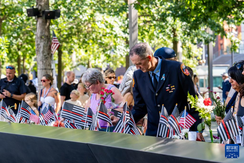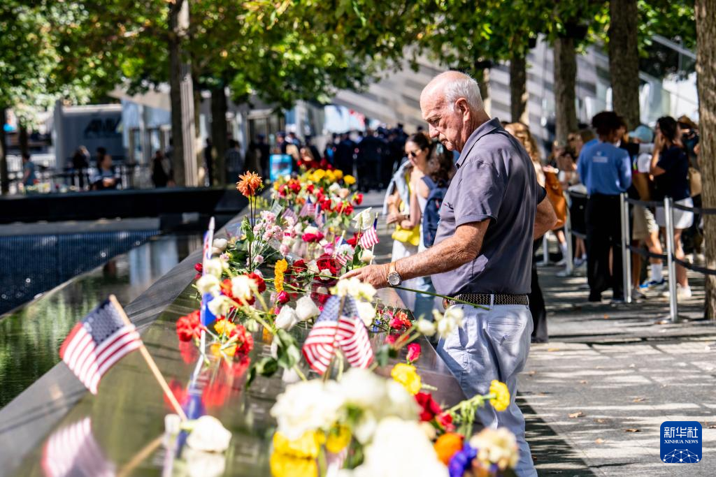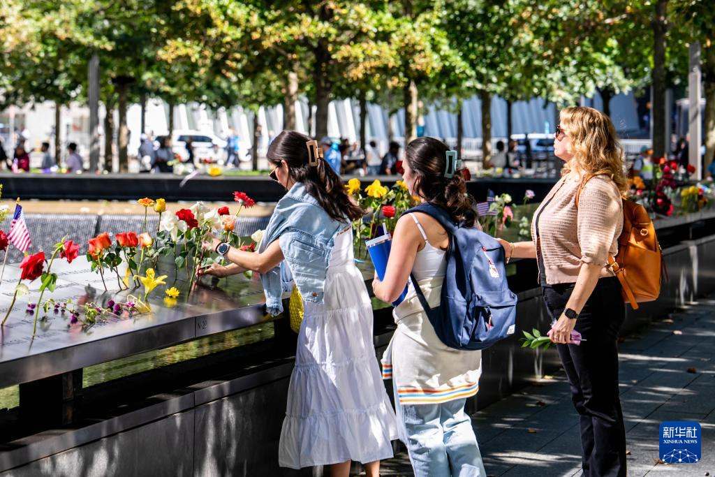 9月11日,民众在美国纽约“9·11”纪念广场悼念“9·11”恐怖袭击事件的遇难者。