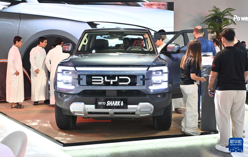 9月22日,在科威特哈瓦利省,人们参观车展上的比亚迪汽车。