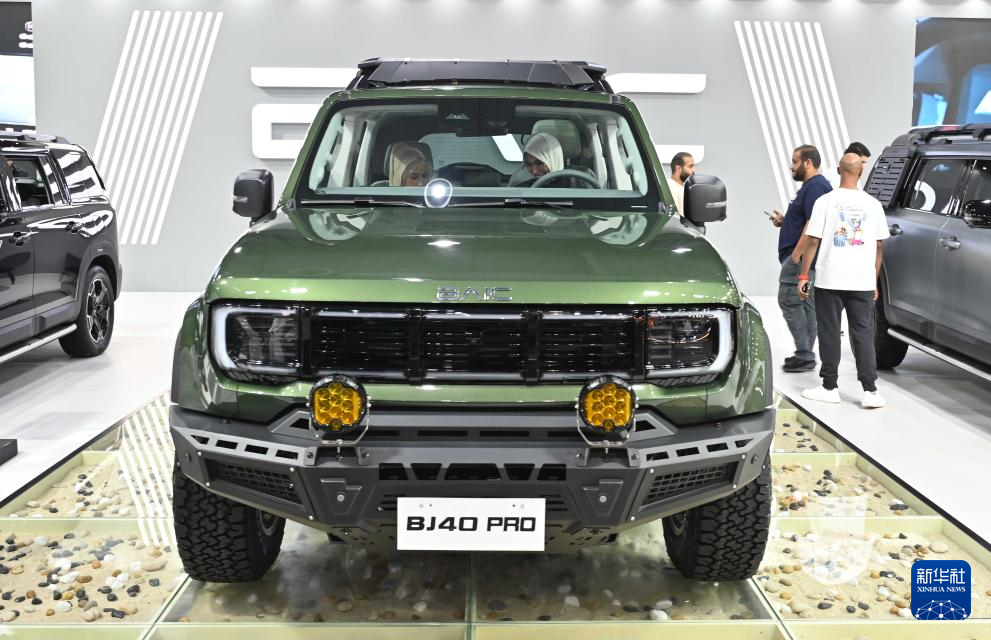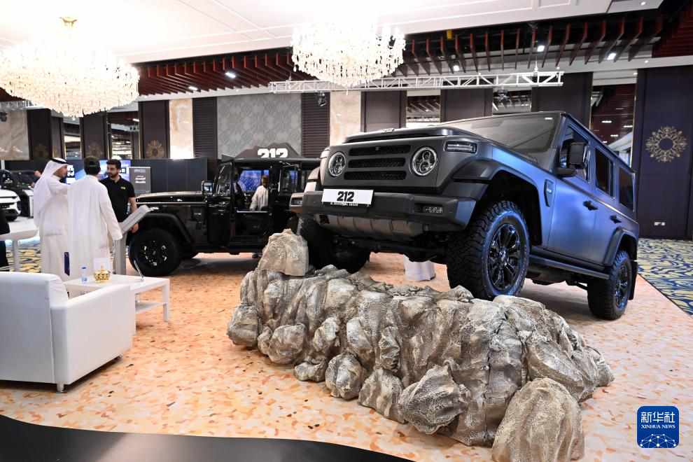 9月22日,在科威特哈瓦利省,人们在车展上体验中国北汽的一款汽车。
