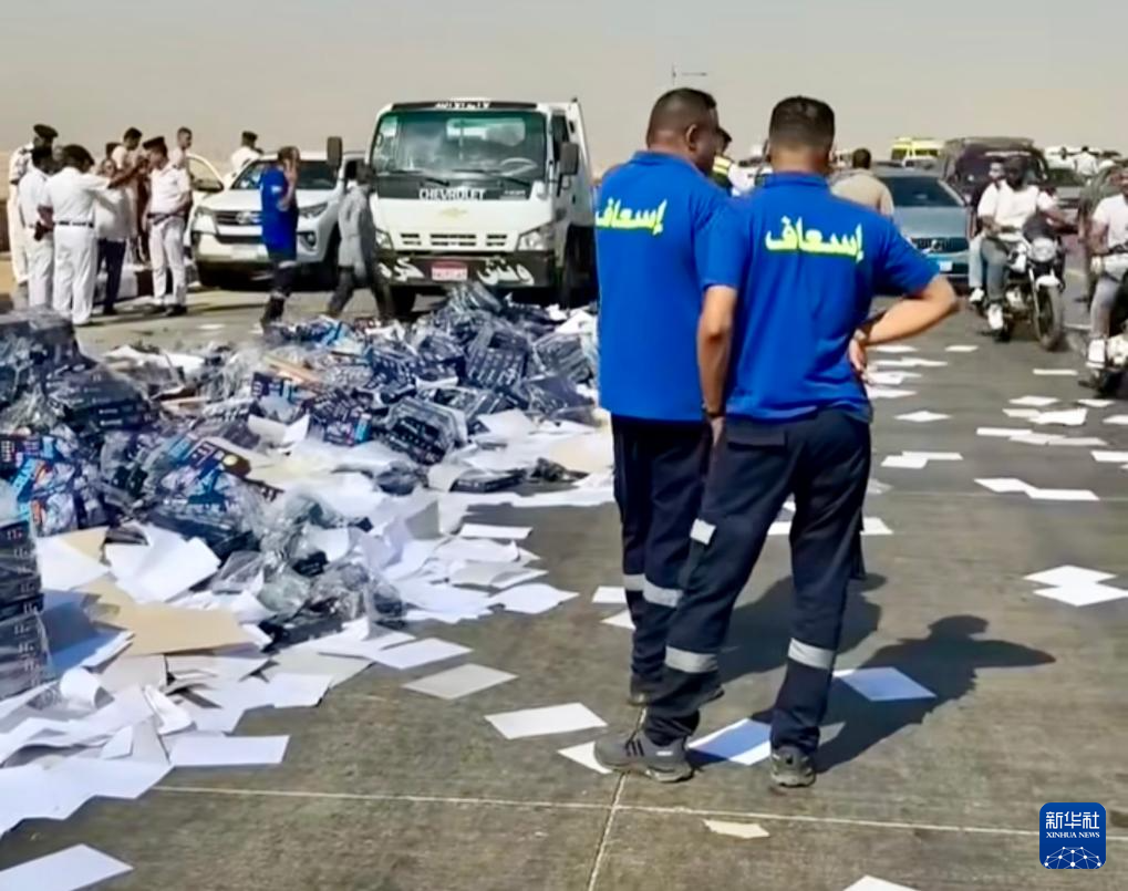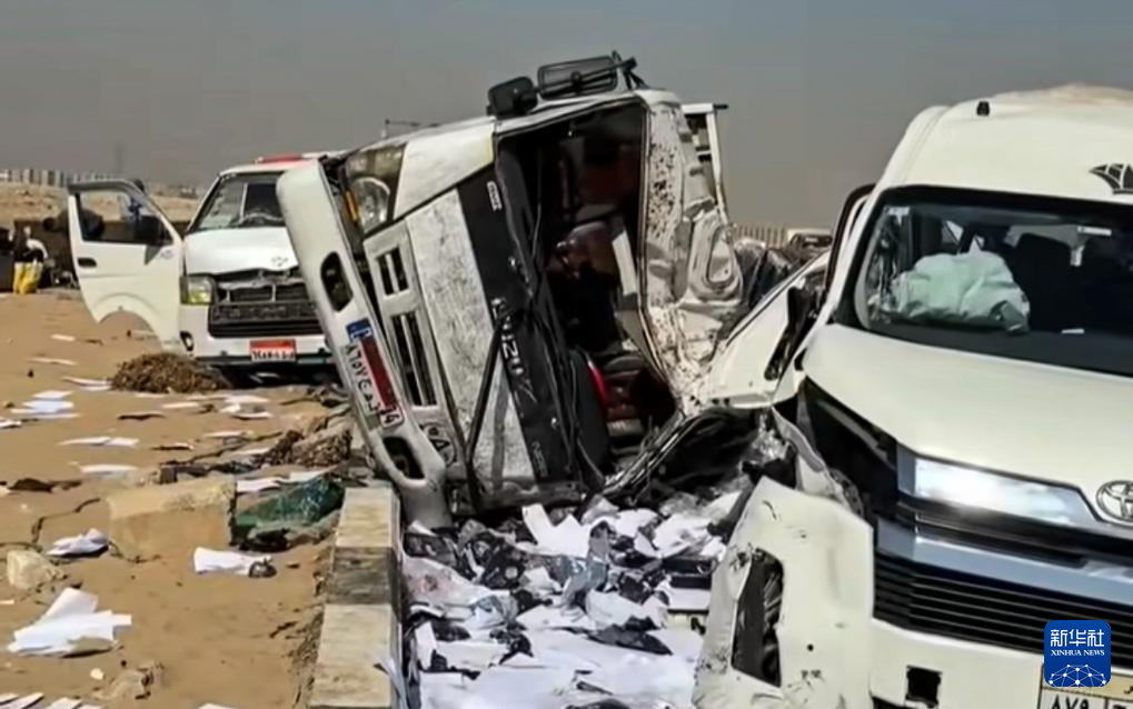 这是9月29日在埃及吉萨省拍摄的交通事故现场。新华社发