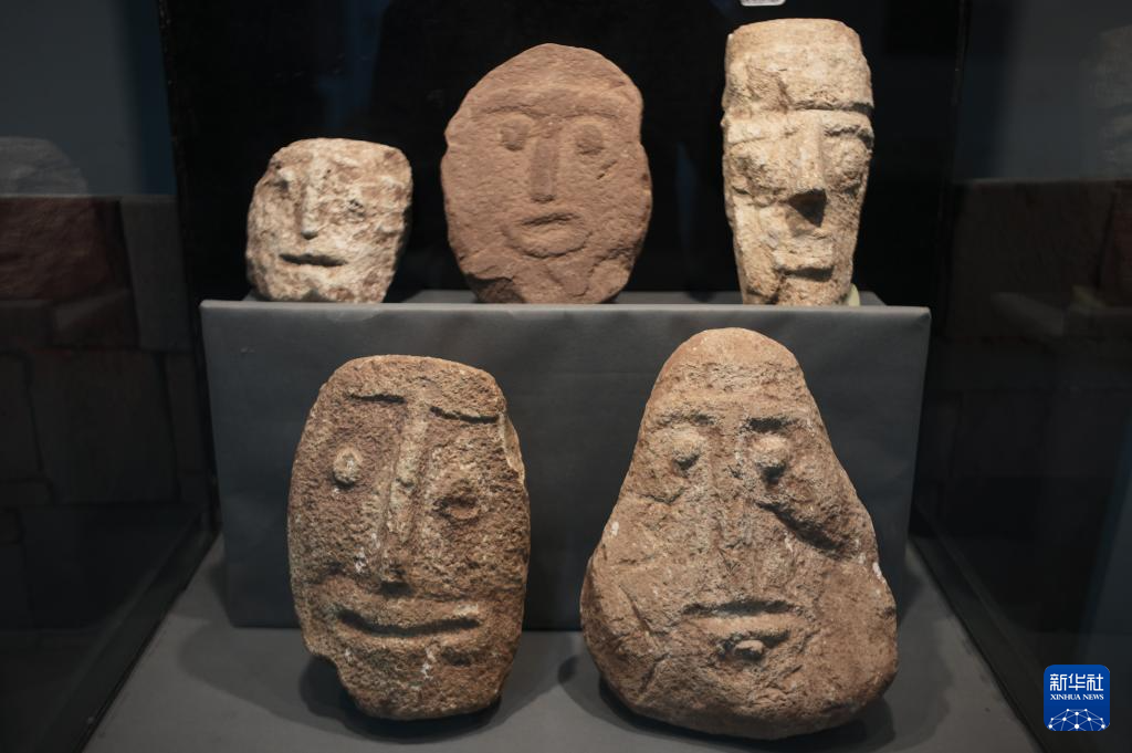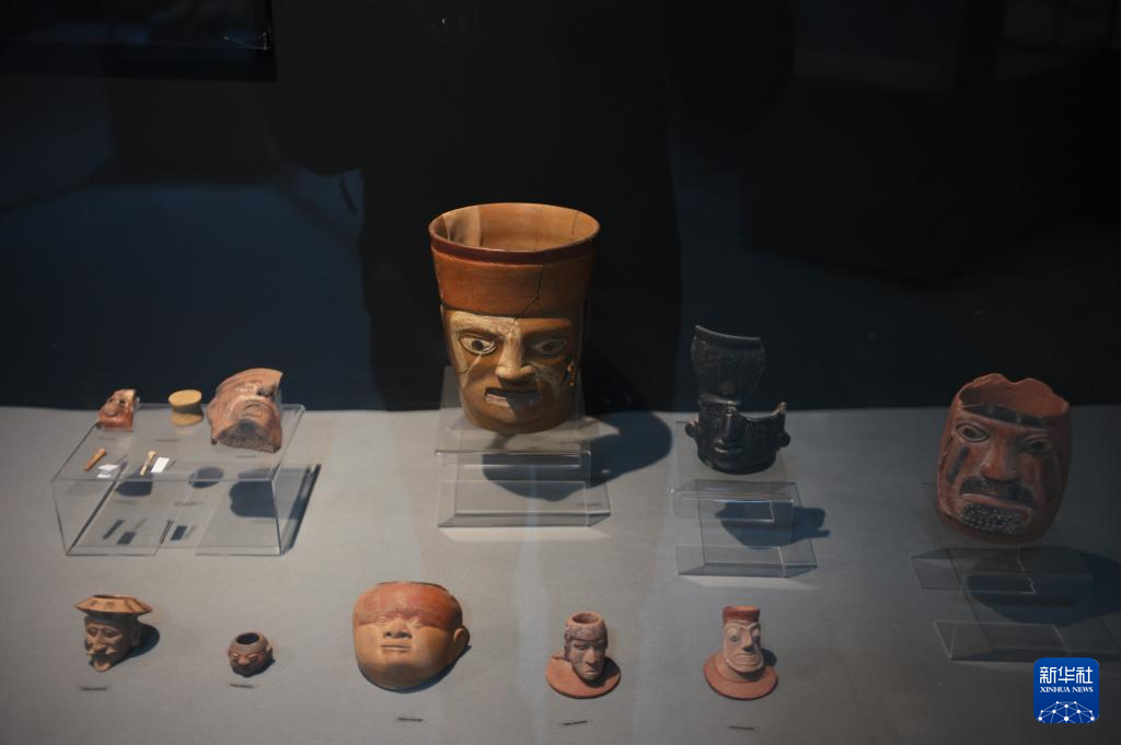 这是8月19日在玻利维亚蒂亚瓦纳科陶瓷博物馆拍摄的展品。