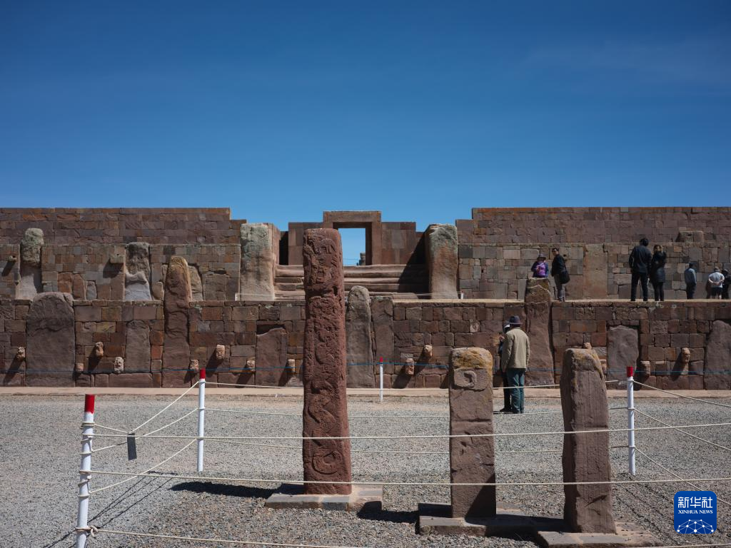 8月19日,人们在玻利维亚蒂亚瓦纳科古城遗址参观。