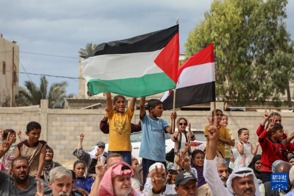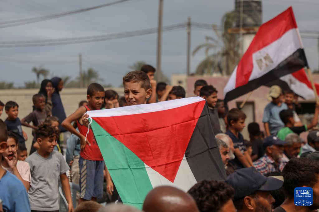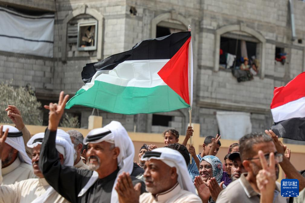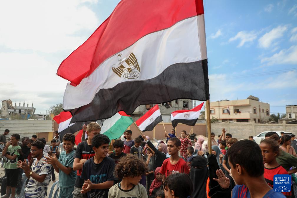 10月9日,在加沙地带中部代尔拜拉赫,巴勒斯坦民众在获悉加沙停火协议的消息后庆祝。