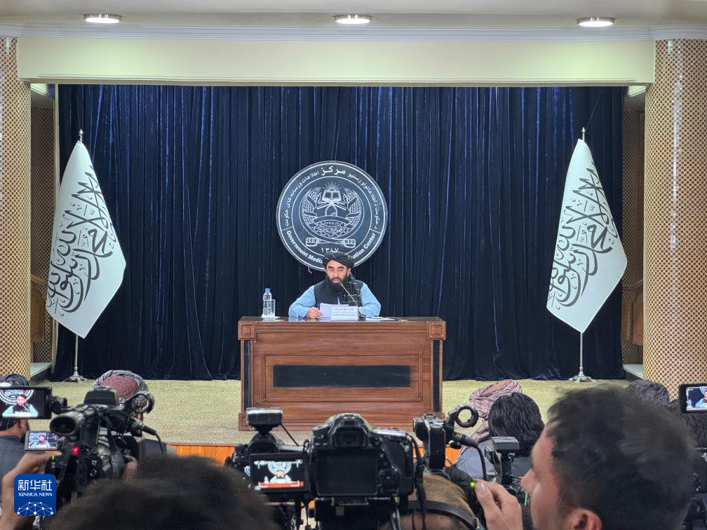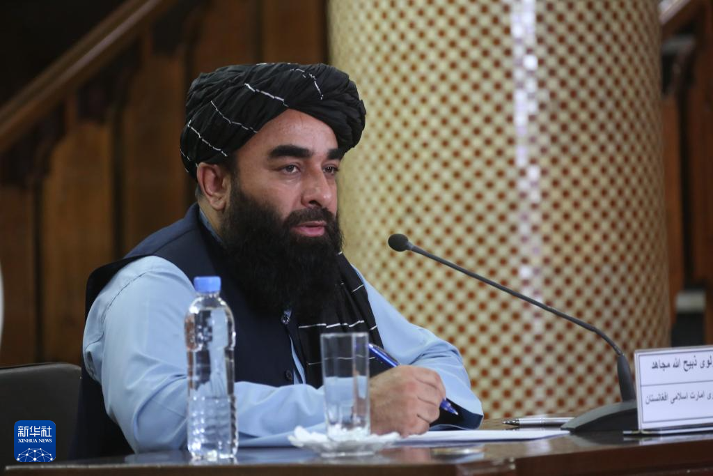 10月12日,阿富汗政府发言人扎比乌拉·穆贾希德在首都喀布尔举行的记者会上发言。