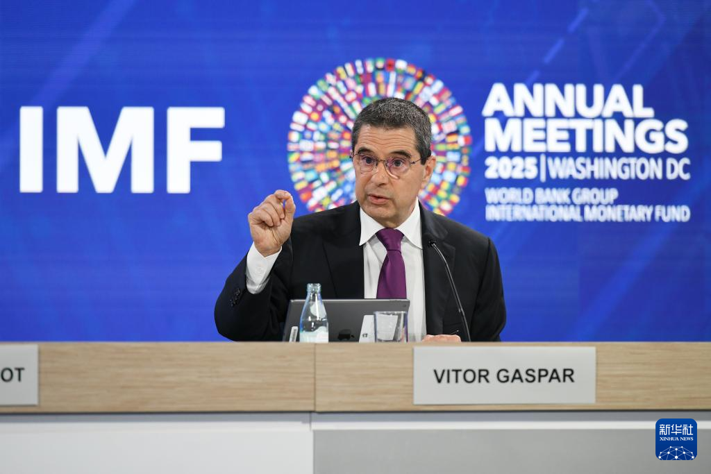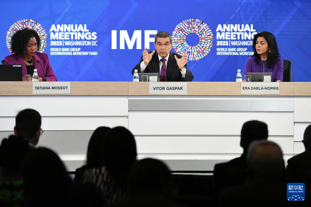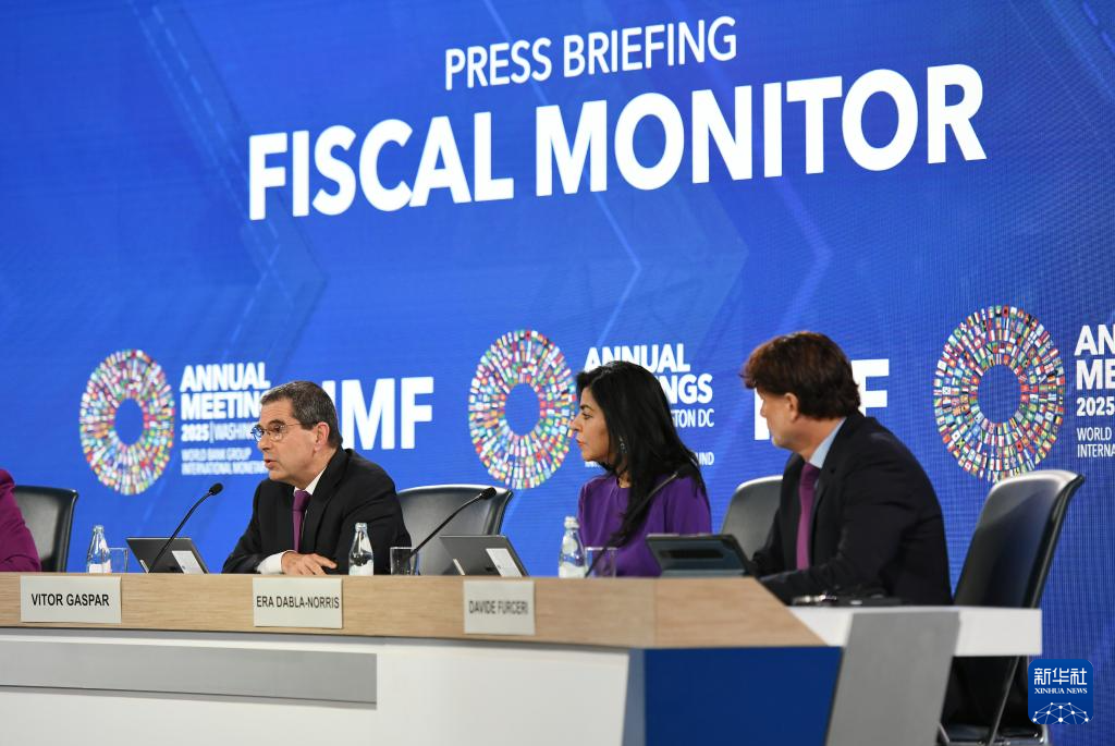 10月15日,在美国华盛顿,国际货币基金组织财政事务部主任维托尔·加斯帕尔(中)在《财政监测报告》新闻发布会上讲话。新华社记者 李睿 摄