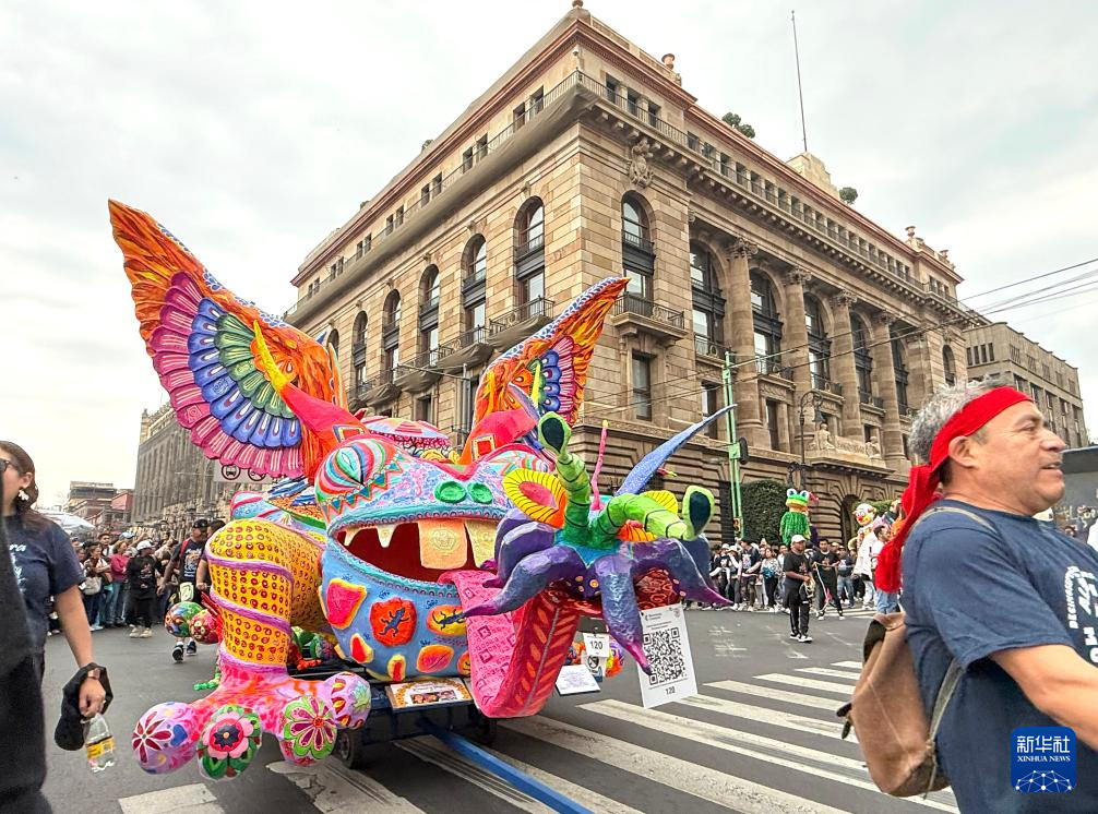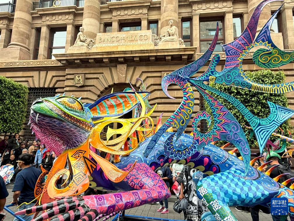 当日,为迎接即将到来的亡灵节,墨西哥城举办魔幻动物“Alebrijes”大游行。“Alebrijes”是一种墨西哥传统手工艺品,用鲜艳的颜色和丰富的图案装饰,展现充满想象力的奇幻动物形象。
