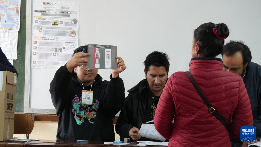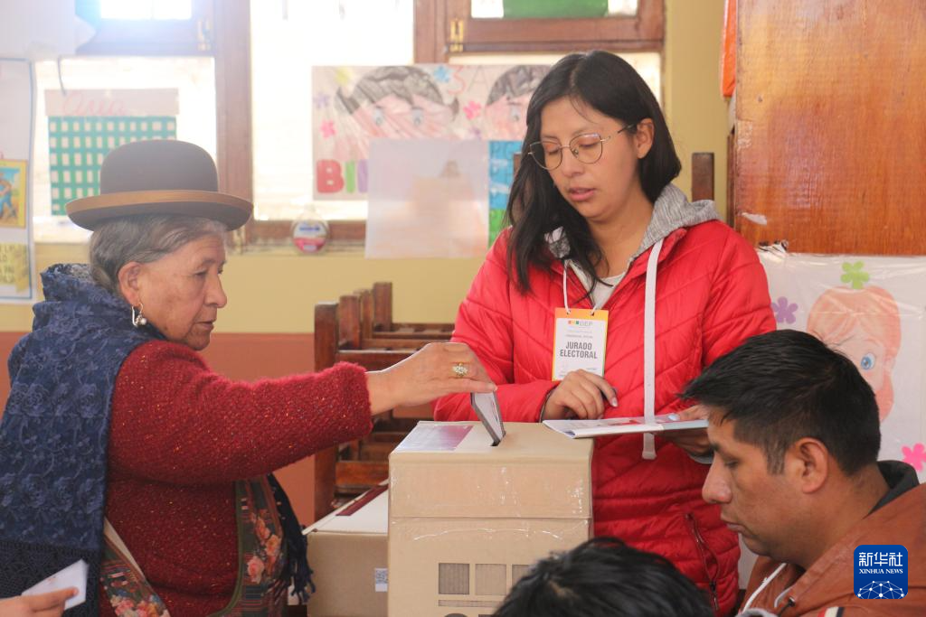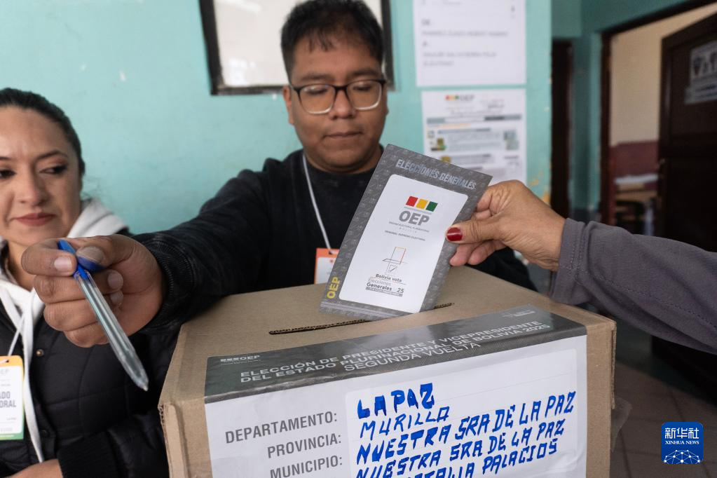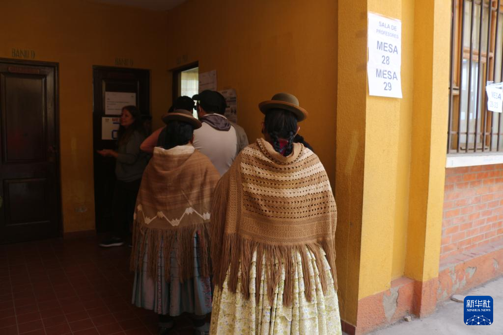 10月19日,在玻利维亚拉巴斯,选民在一处投票点投票。