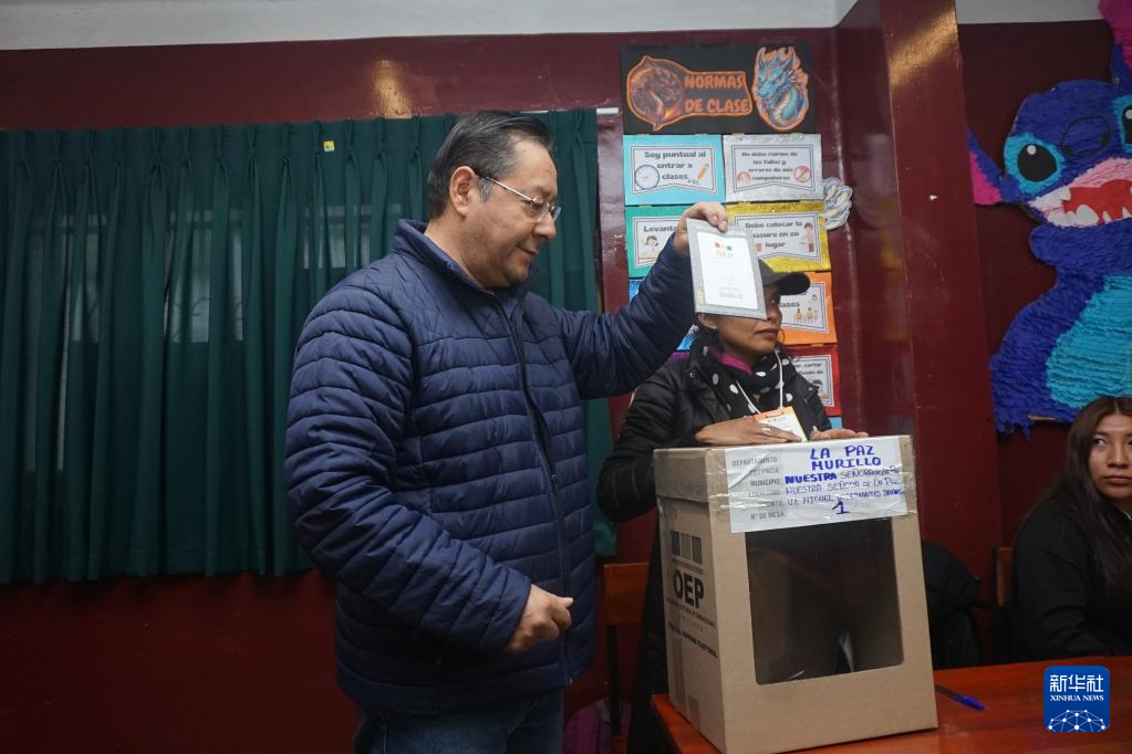 10月19日,在玻利维亚拉巴斯,玻利维亚总统阿尔塞在一处投票点投票。