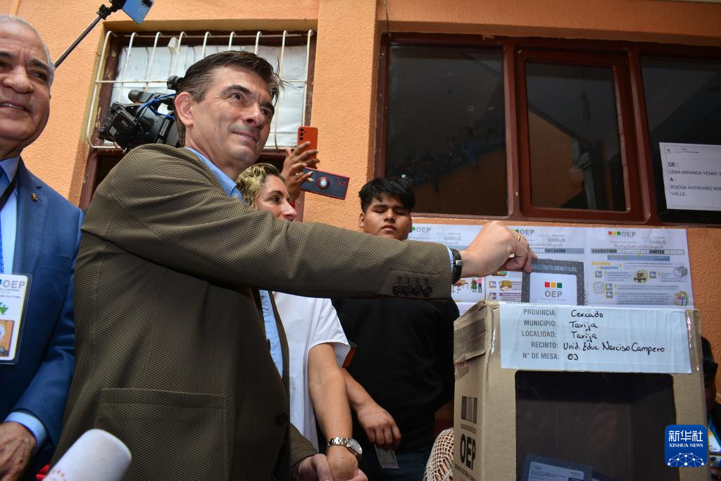 10月19日,在玻利维亚塔里哈,基督教民主党候选人罗德里戈·帕斯·佩雷拉在一处投票点投票。