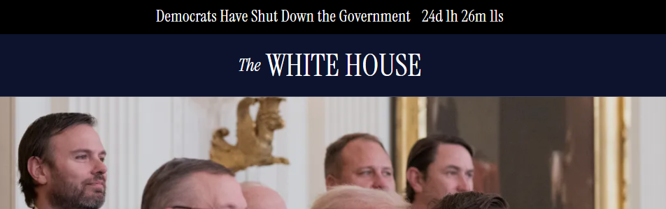 白宫网站“民主党人导致政府‘停摆’”截图。