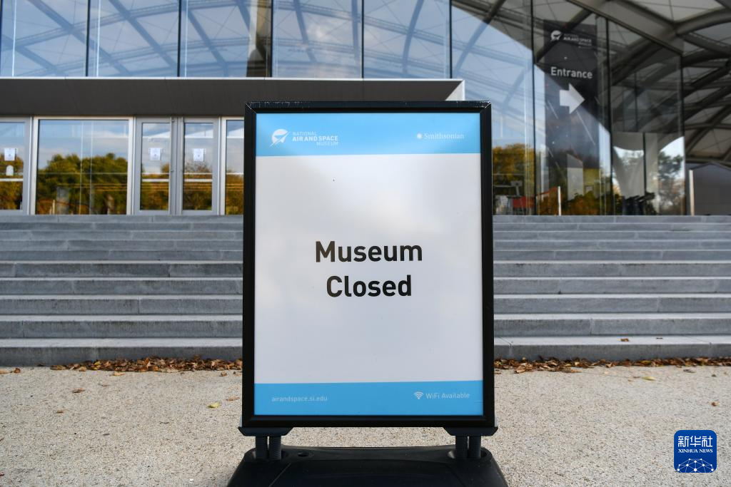 10月21日,公告牌显示位于美国华盛顿的美国国家航空航天博物馆因联邦政府“停摆”而关闭。新华社记者 李睿 摄