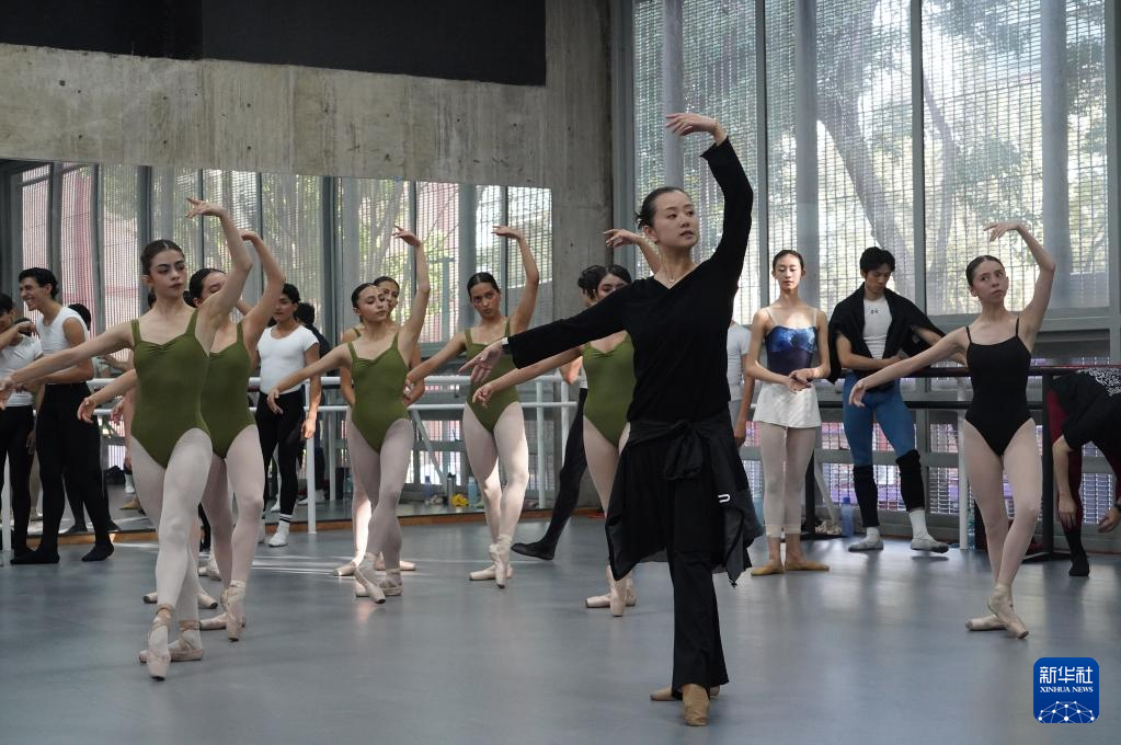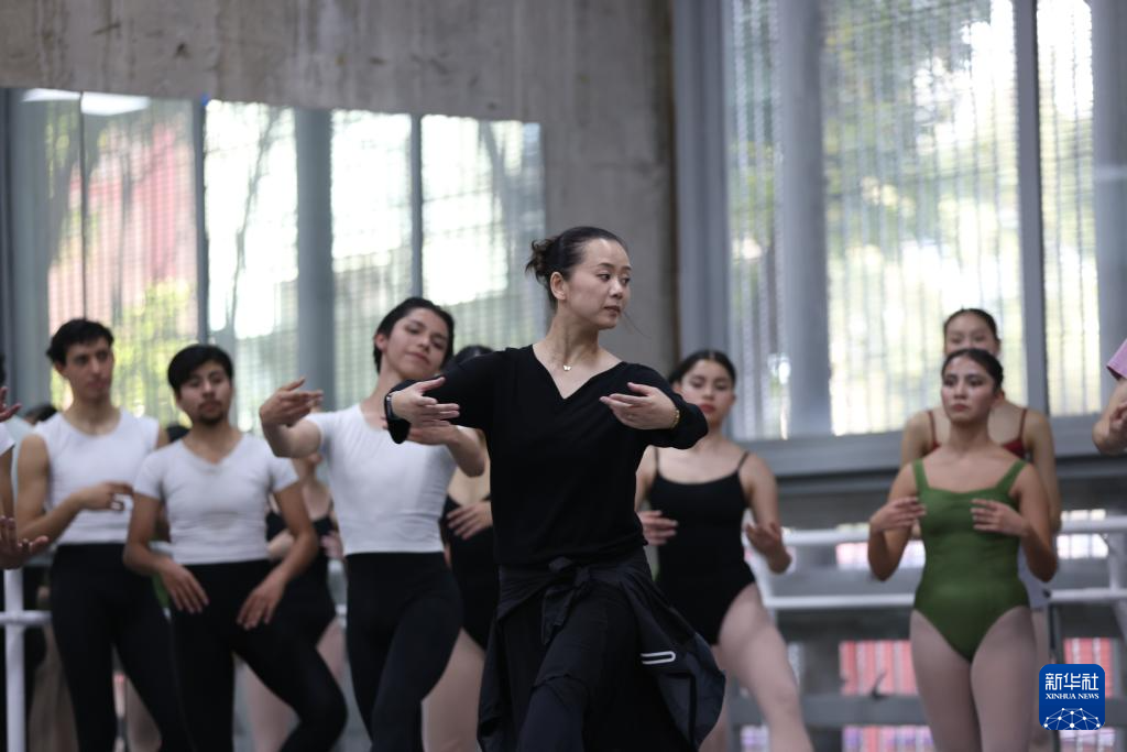 当日,在墨西哥首都墨西哥城,中央芭蕾舞团为墨西哥两所舞蹈学校学生教授大师课,并学习墨西哥当地舞蹈。