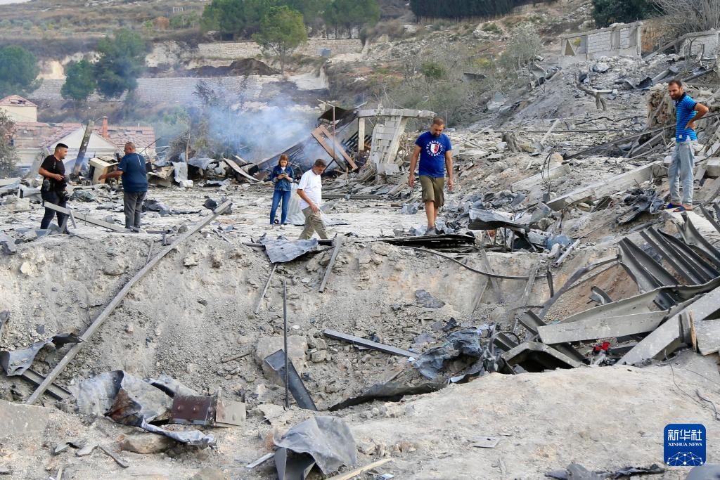 11月6日,在黎巴嫩南部城市提尔的阿巴西耶镇,黎巴嫩民众站在以色列空袭现场。