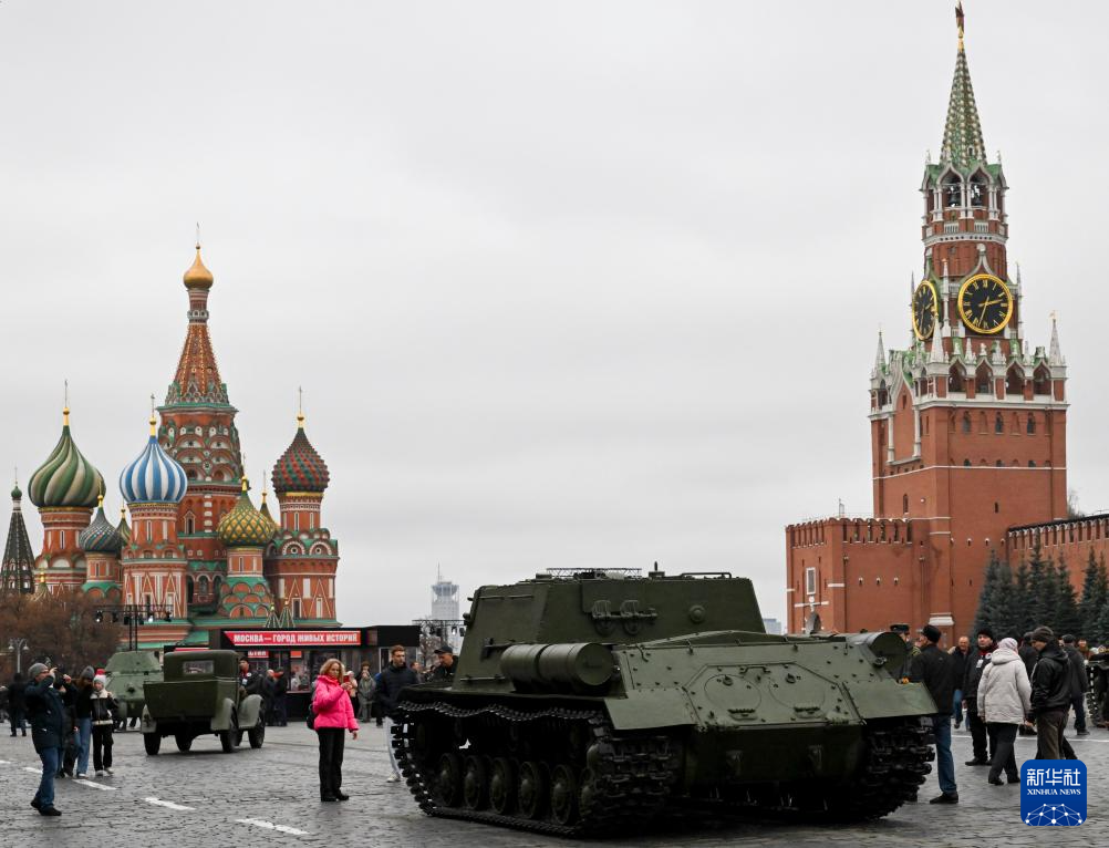当日,俄罗斯在红场举行露天展览,纪念1941年苏联红场阅兵式。