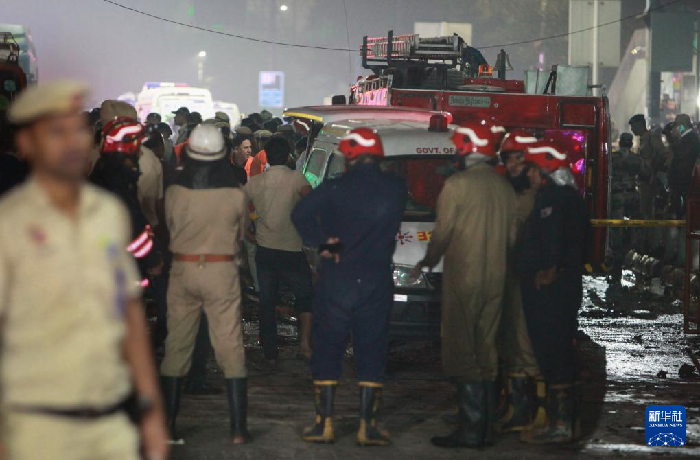 11月10日,在印度新德里,警察和消防员聚集在汽车爆炸事发地点周围。新华社发